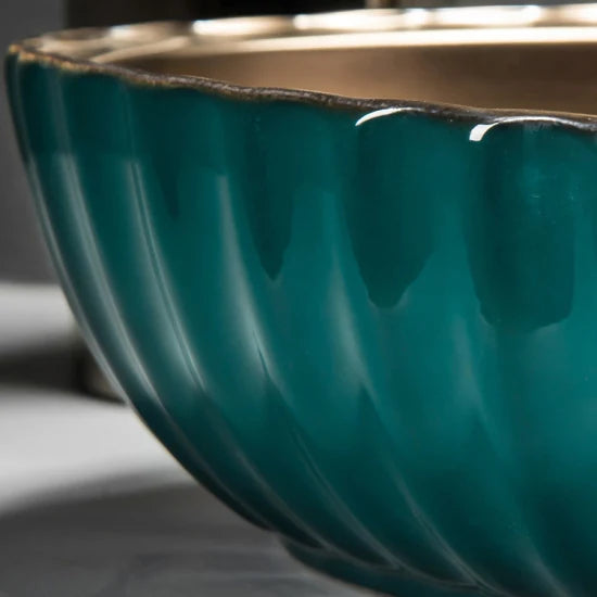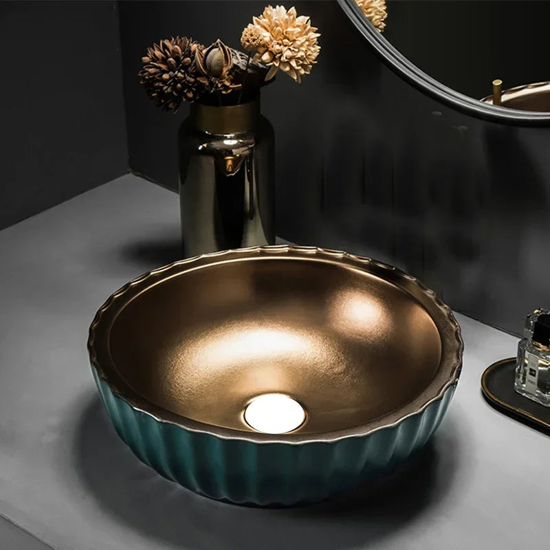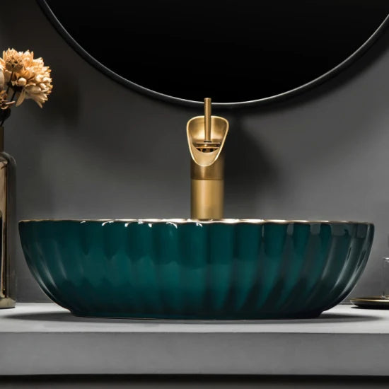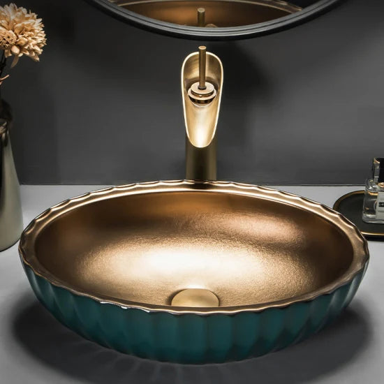 Nordic Bathroom Sink Green and Gold Round Oval Ceramic Washbasin
