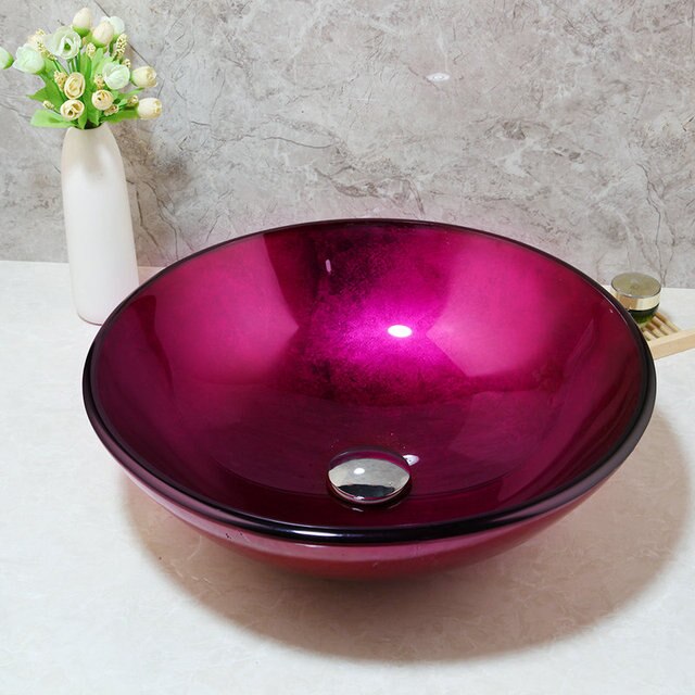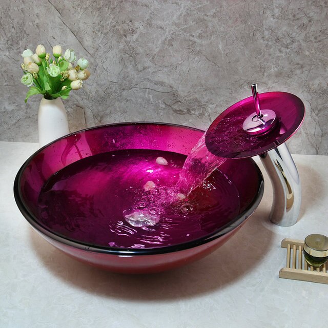 Rose Red Unique Tempered Glass Basin Sink Washbasin Faucet Set