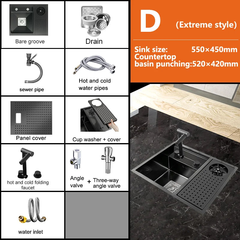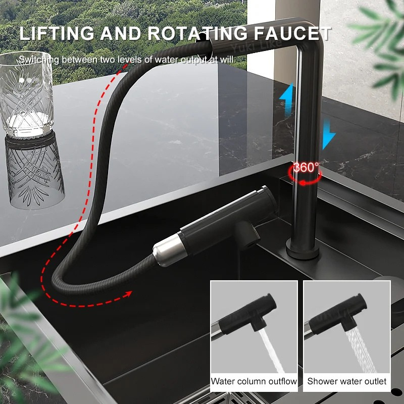 Hidden Kitchen Sink Bar Stainless Steel Folding Faucet and Drain Pipe