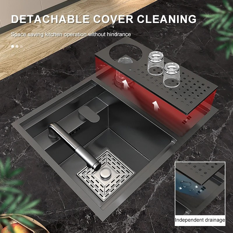 Stainless Steel Hidden Mini Kitchen Sink Small Tank With Cover Plate