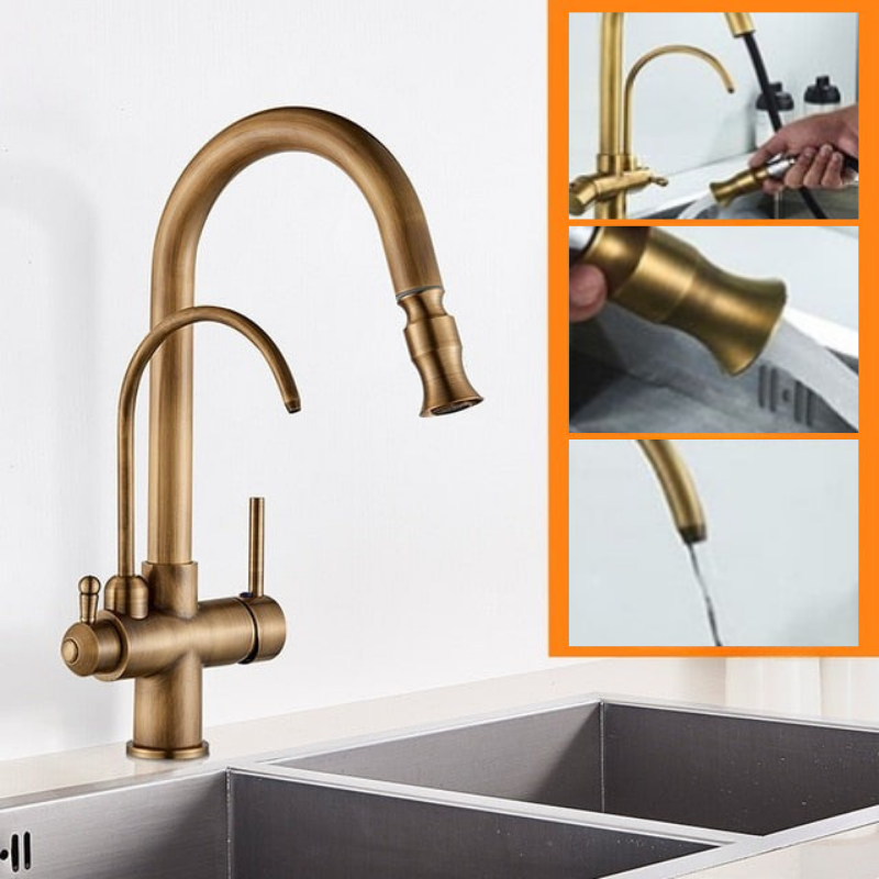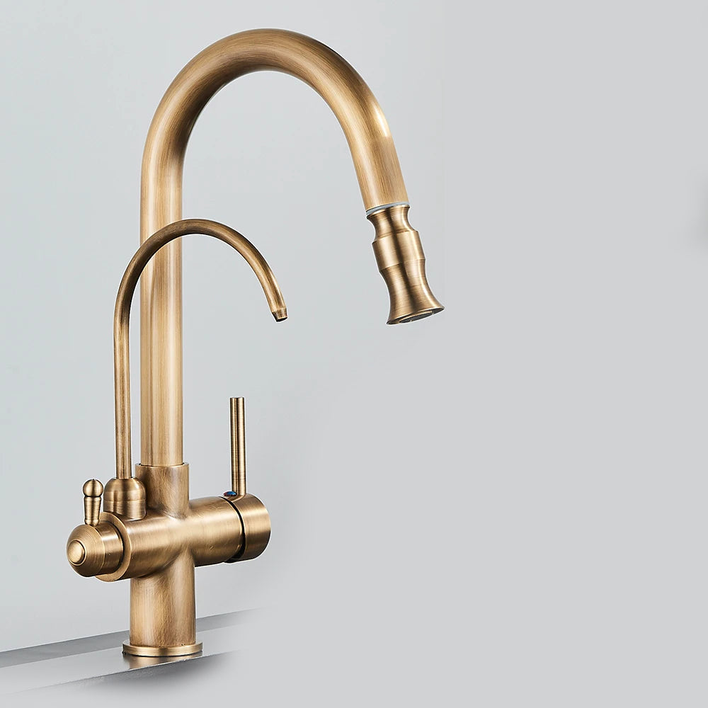 Antique Brass Kitchen Faucet Pull Out Spout Kitchen Faucet Mixer Tap