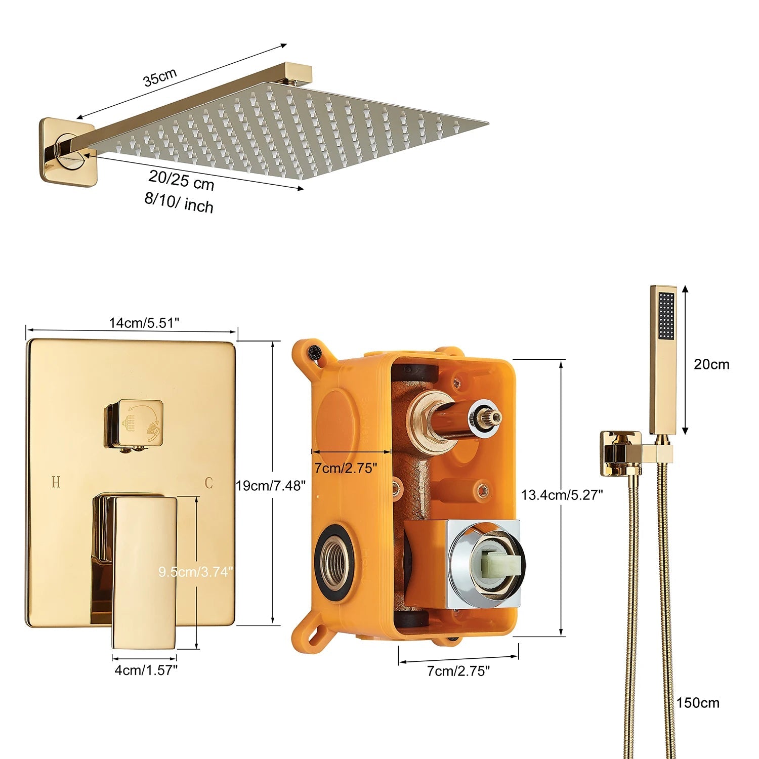 Brass Shower Head 8/10/12inch Faucet Concealed In-wall Installation Shower System
