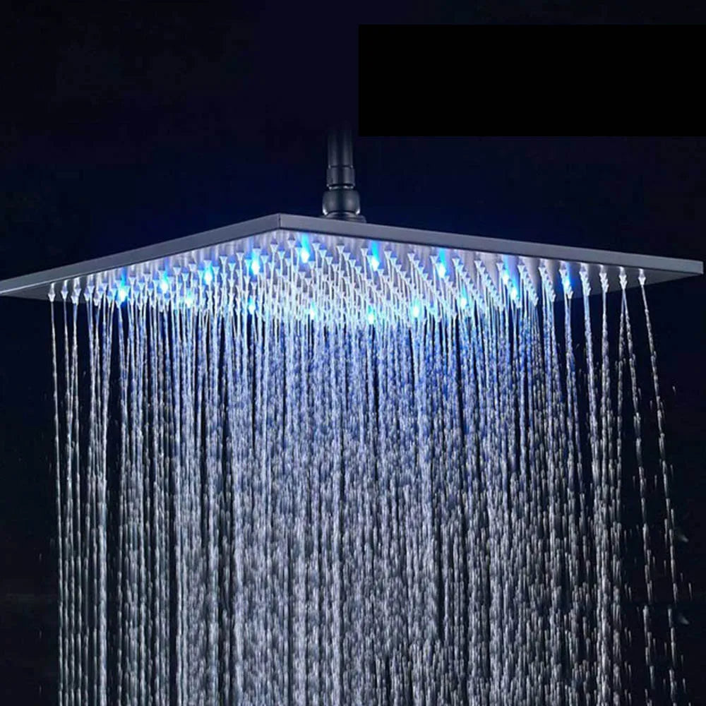 16" Square Stainless Steel Shower Head Colorful LED Rain Shower Light