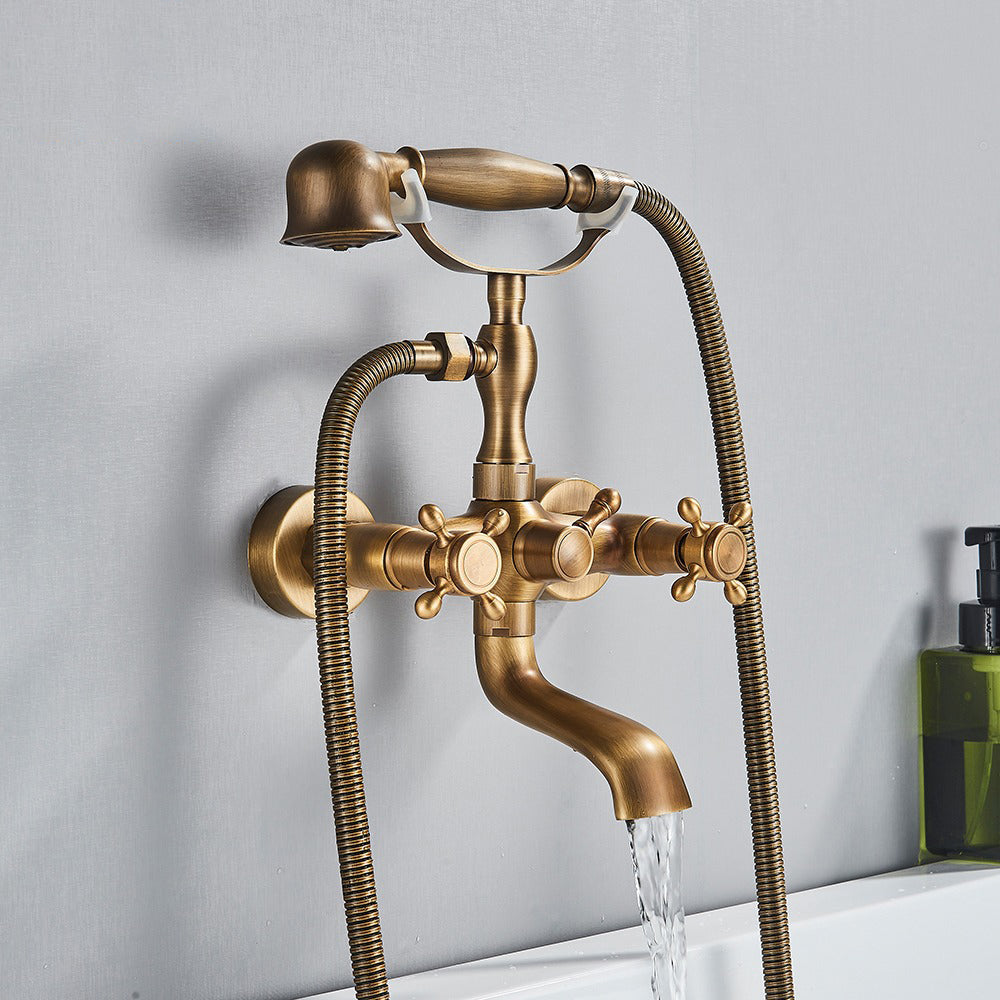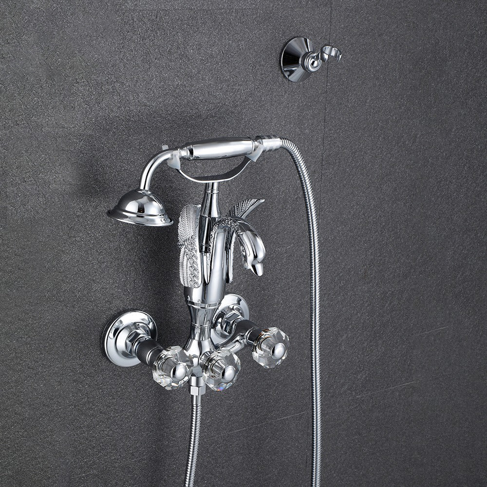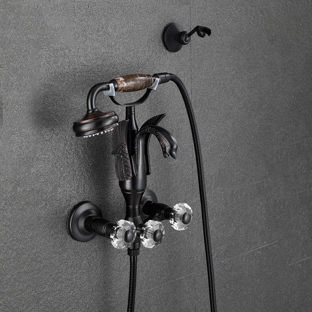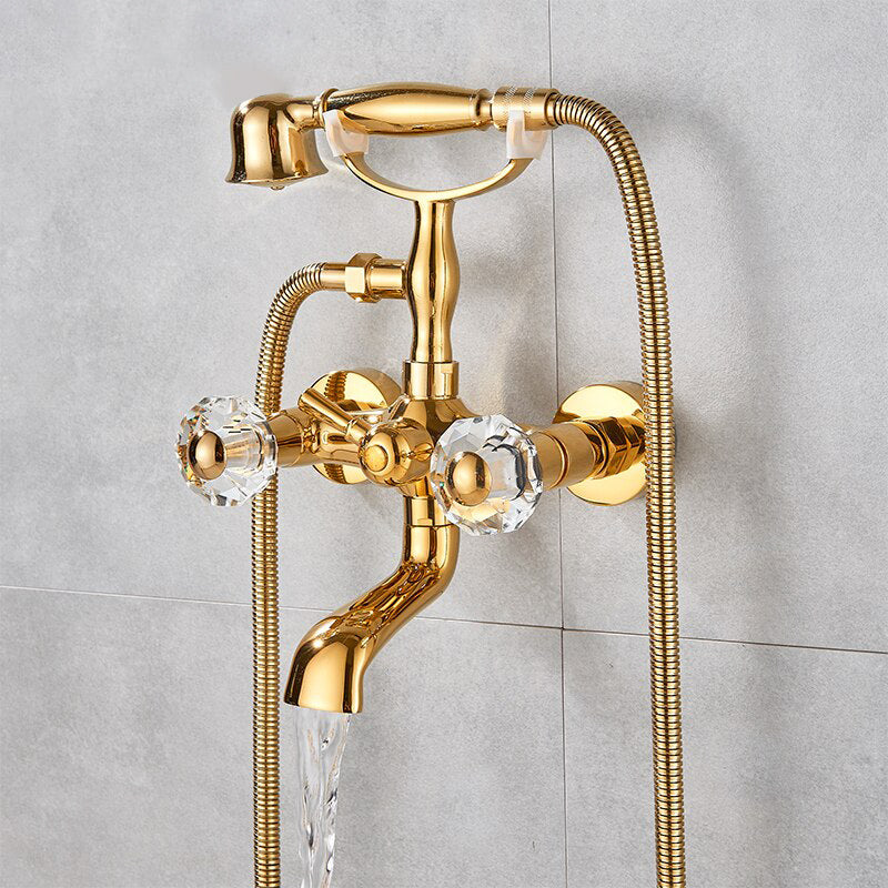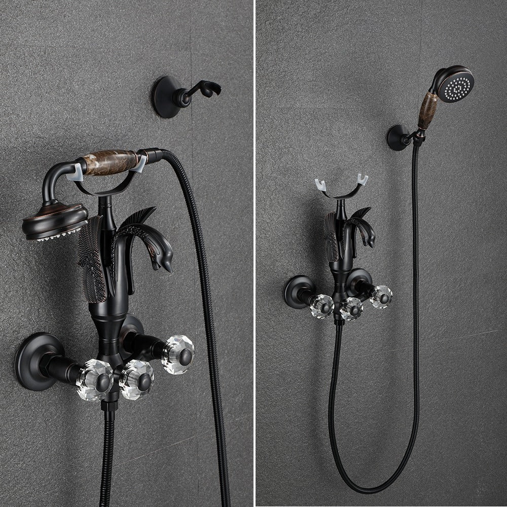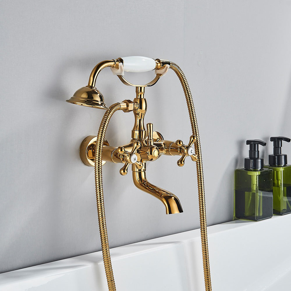 Index Bath Golden Brass Bath Shower Faucet Set Wall Mounted Swan Bathroom Faucet