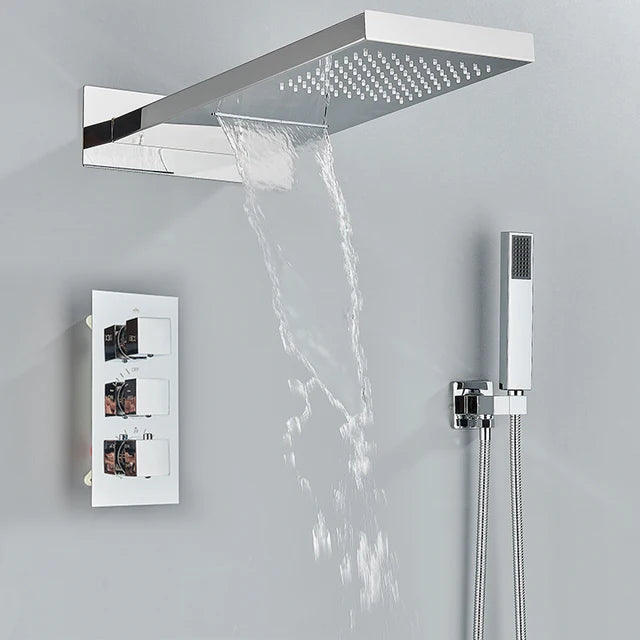 Rain Waterfall Shower Head With 3-way Thermostatic Mixer Tap
