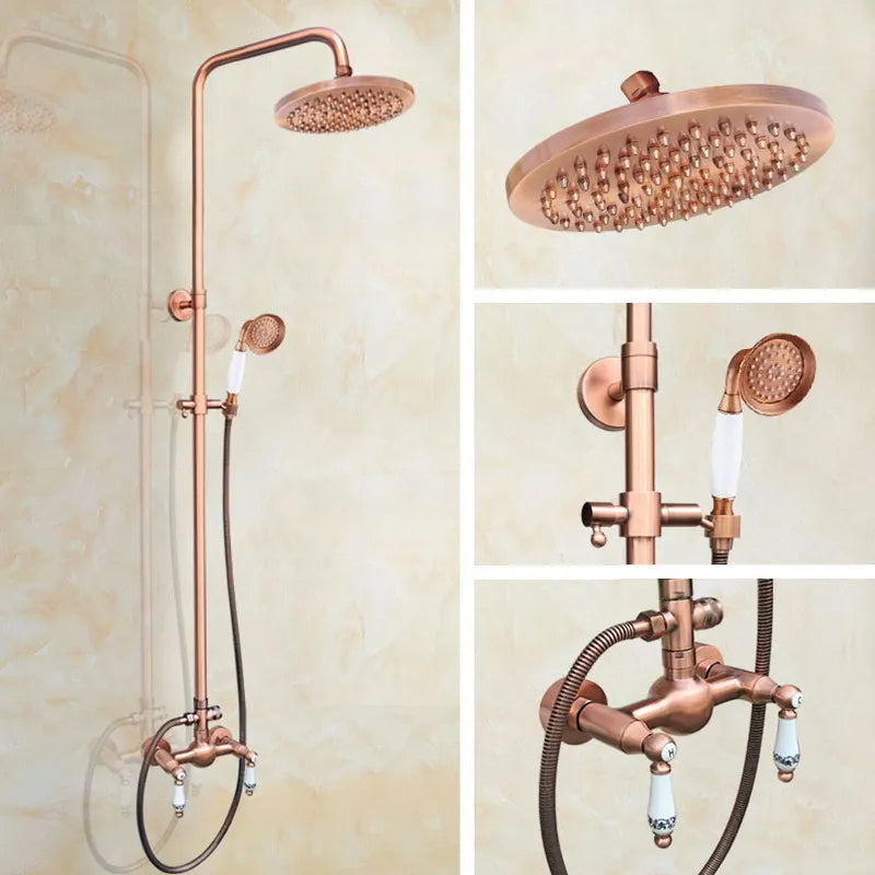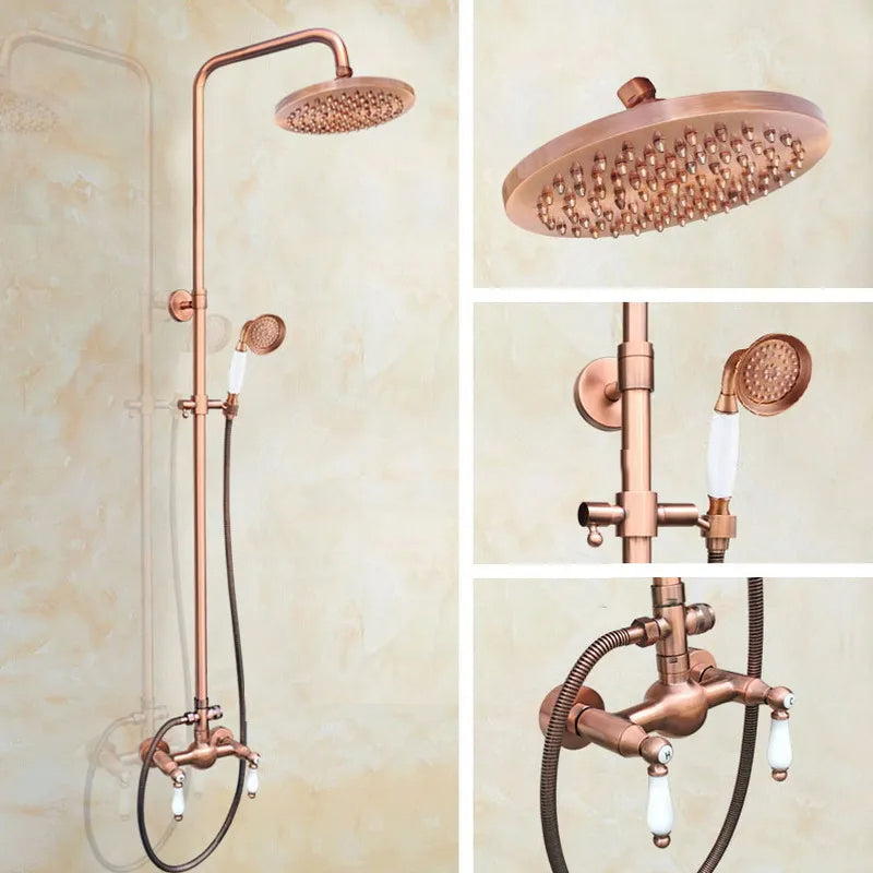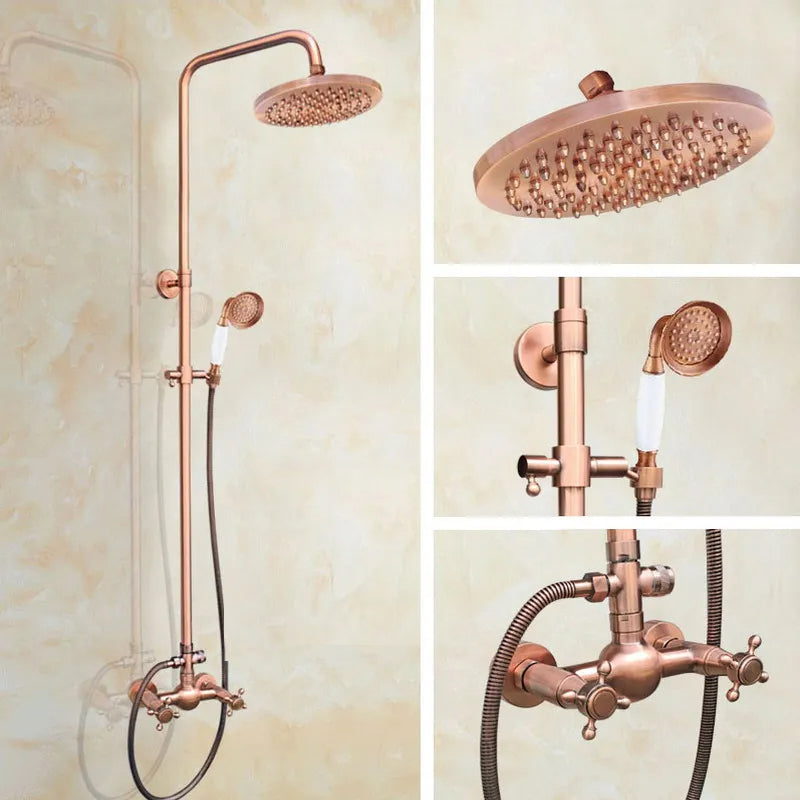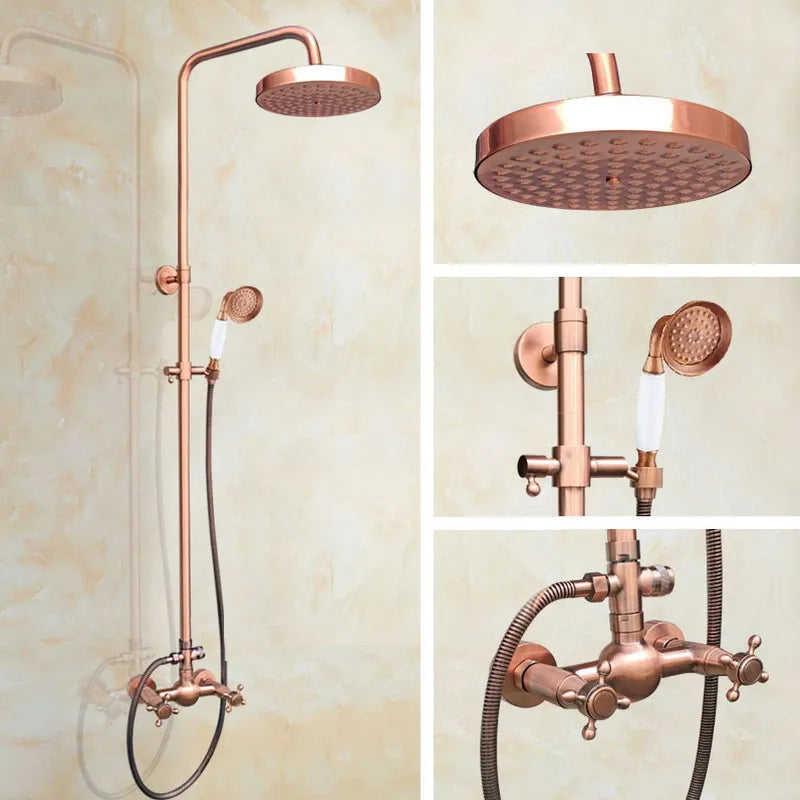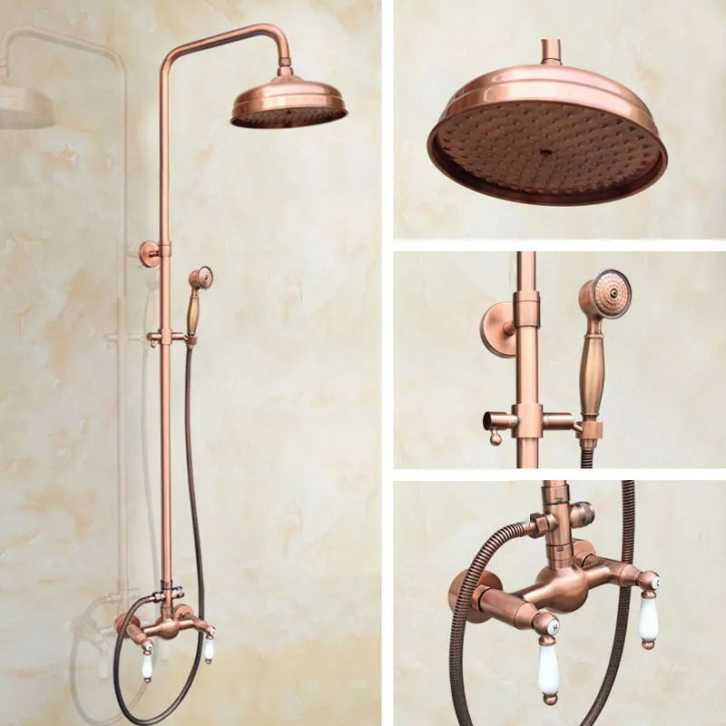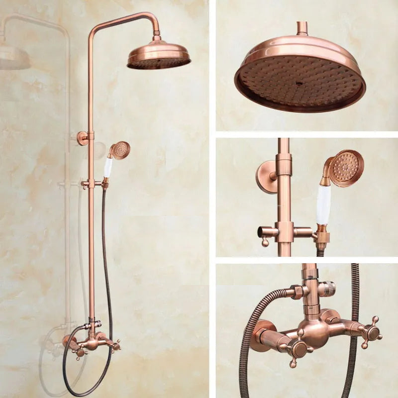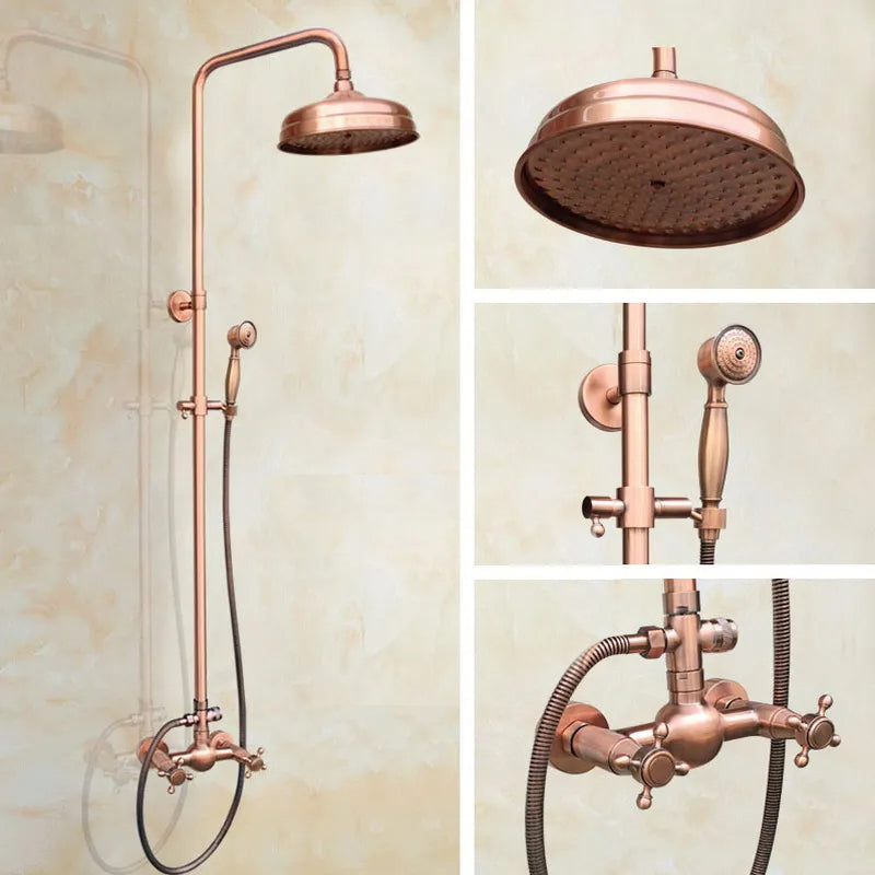 Antique Red Copper Wall Mounted Dual Handles Shower Head Faucet Set