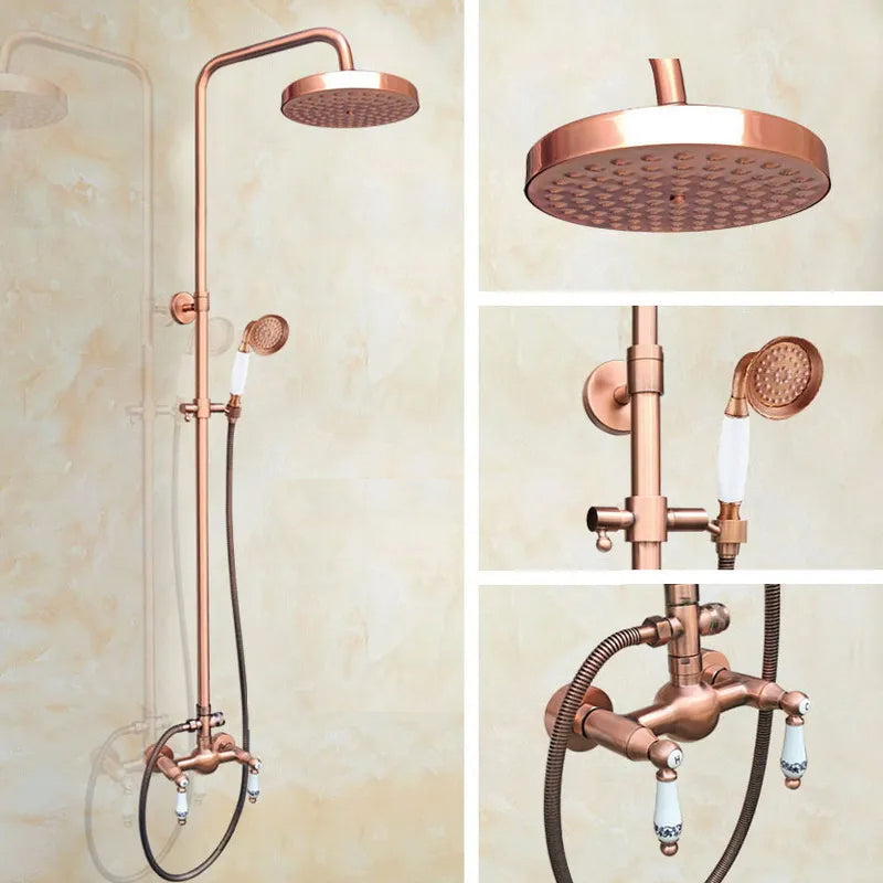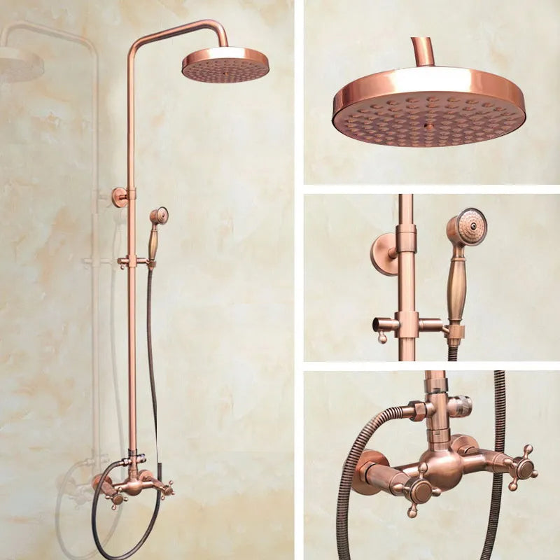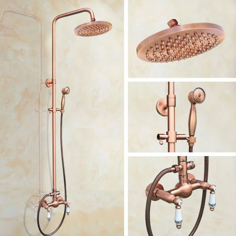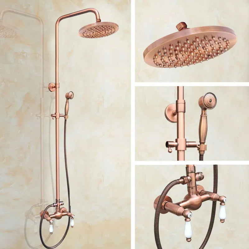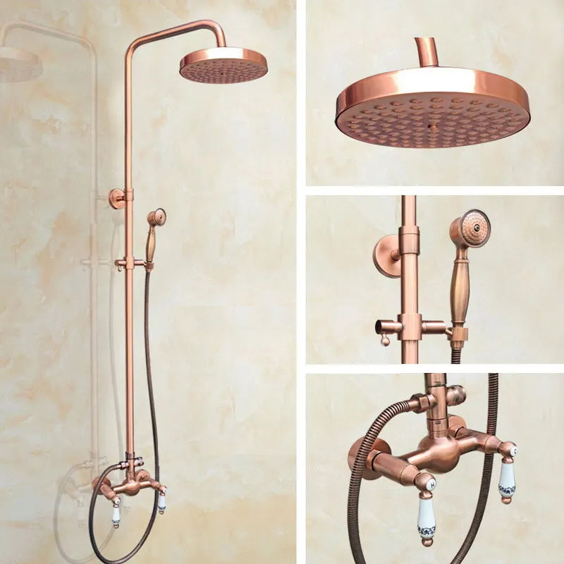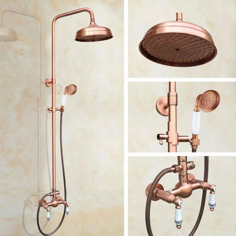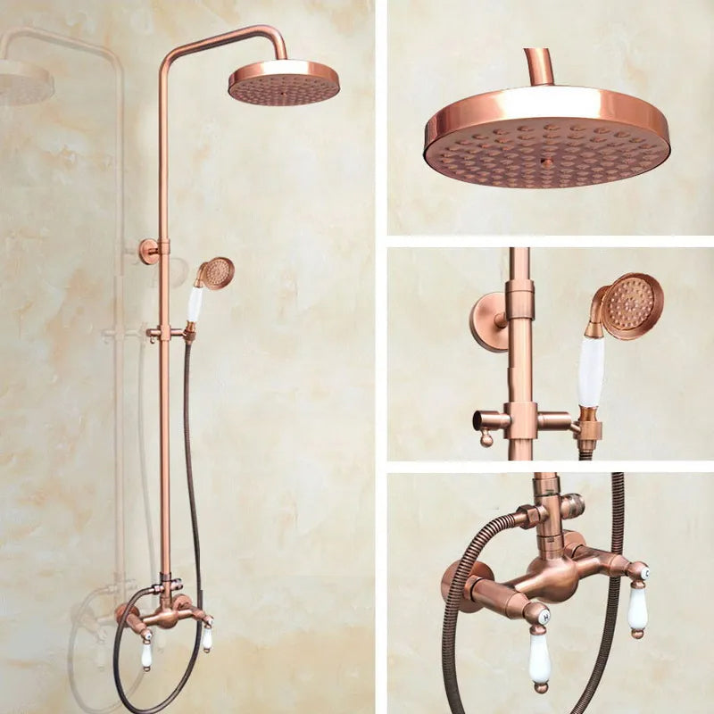 Antique Red Copper Wall Mounted Dual Handles Shower Head Faucet Set