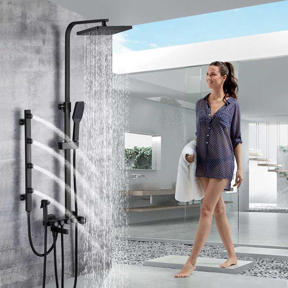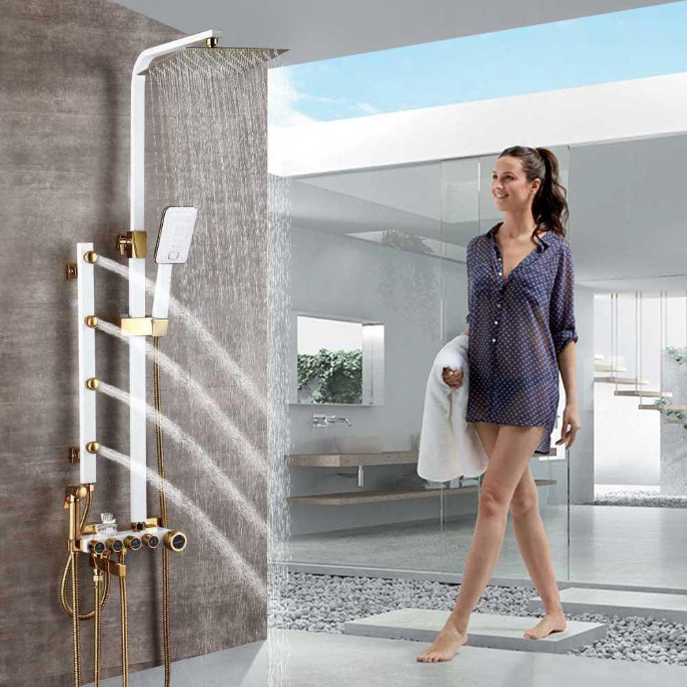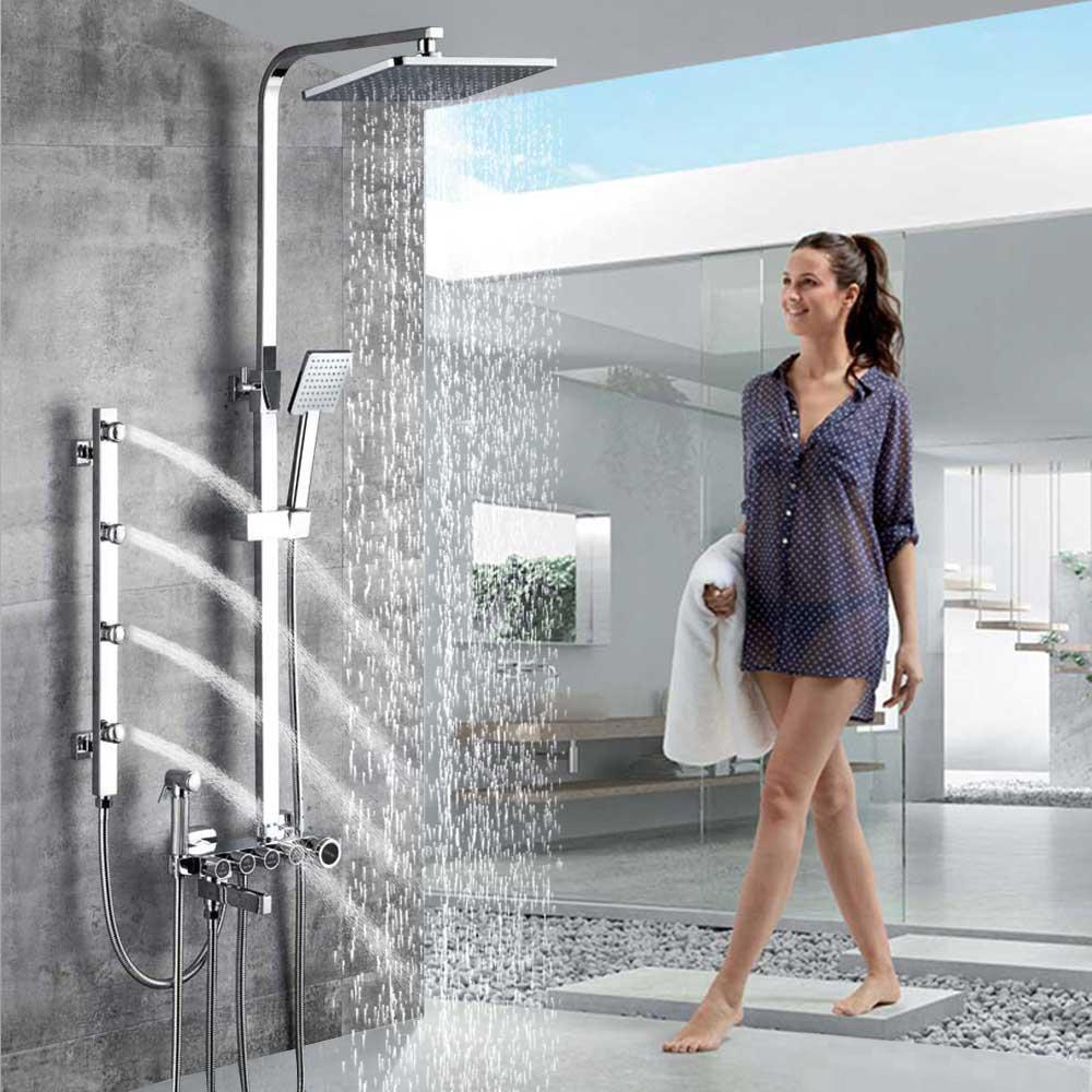 Index Bath Brass Jet Shower Faucet Set Body Massage Shower, 8' Rainfall Shower Head With Body Jets 4 Colors Set
