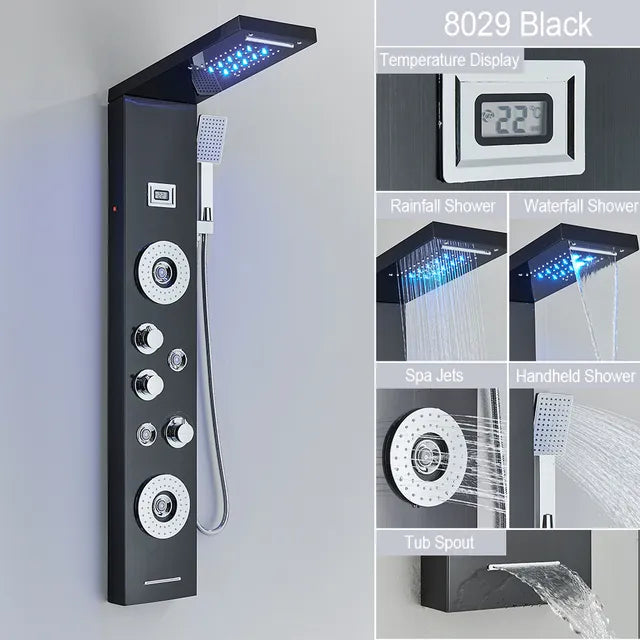 Shower Panel Faucet Degree Display with SPA Massage Jet Shower System