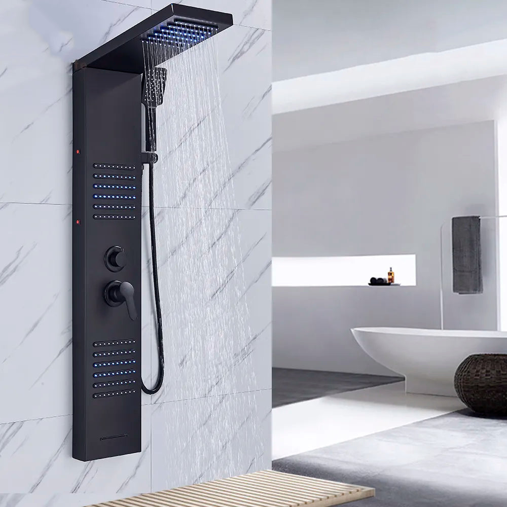 LED Shower Panel Massage Jet Bath Shower Column Double Handle Mixer Tap