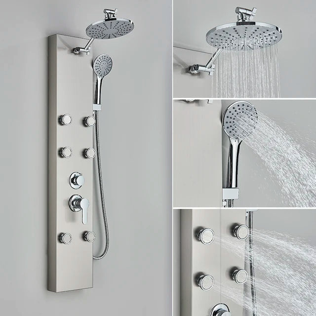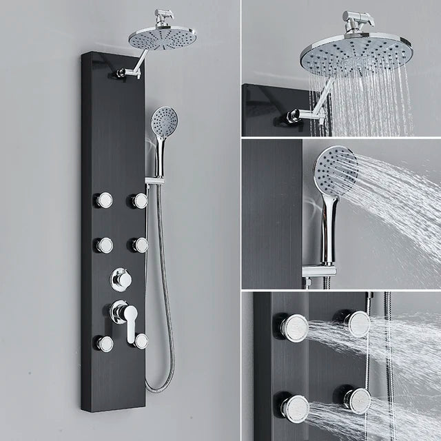 8" Stainless Steel Shower Column Panel Rain & Waterfall Shower Head Massage Jets Shower System