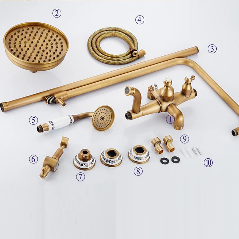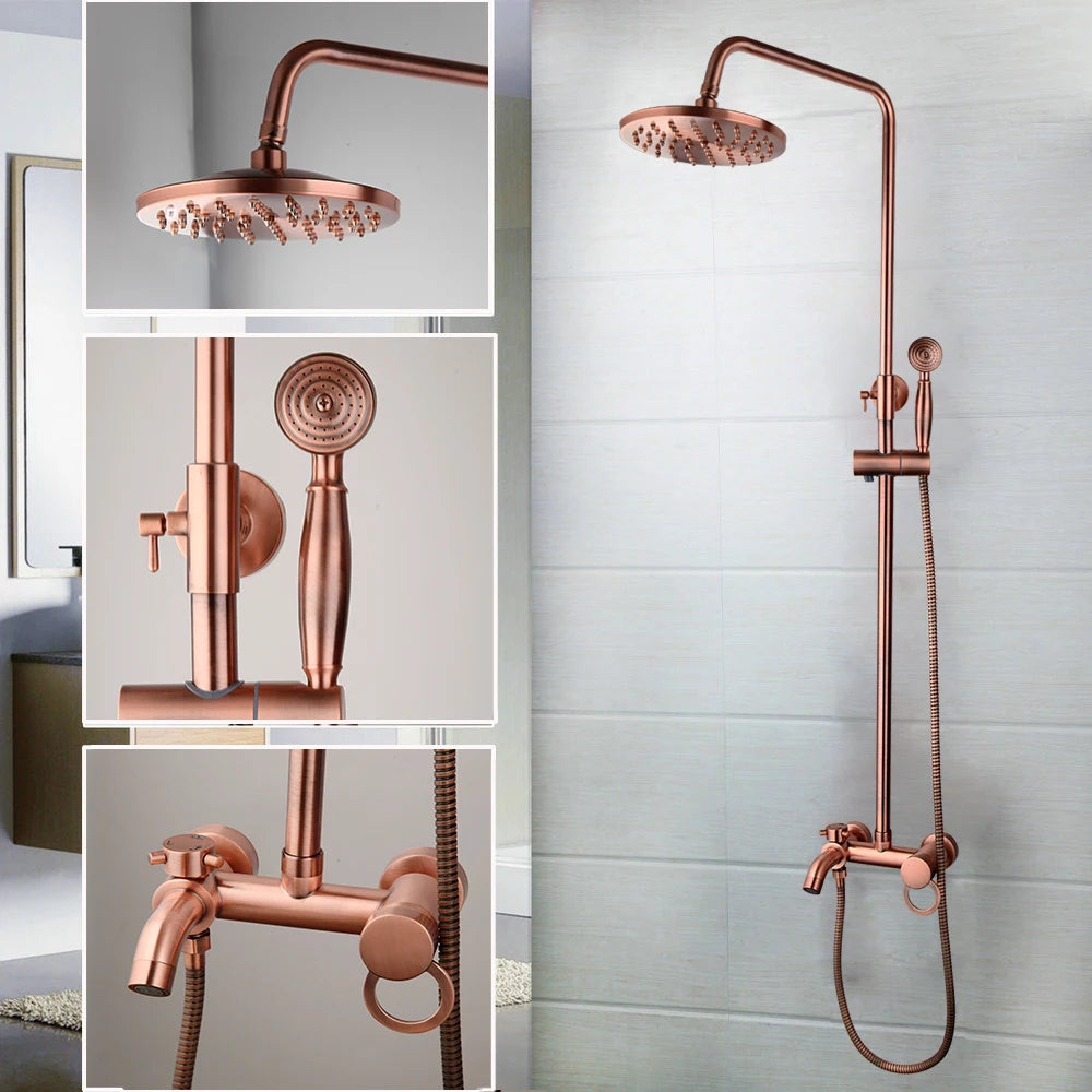 Antique Copper Shower Set Rainfall Shower Head Bath Shower Mixer Set