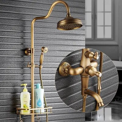 Antique Brass Mixer Valve Shower Set One Handle with Storage Holder