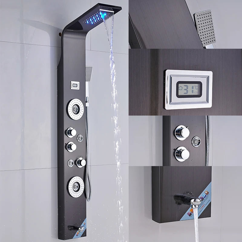 Bathroom Shower Panel LED Waterfall Shower Water Top Spray Temperature
