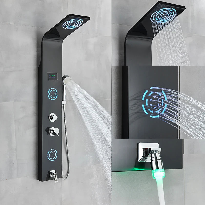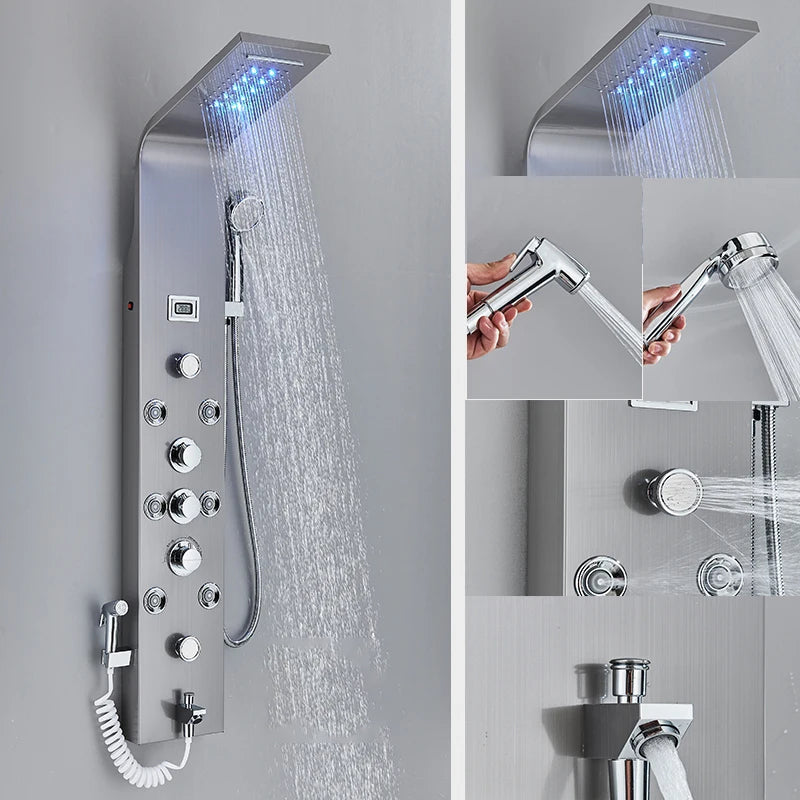 Luxury LED Shower Column Faucet SPA Massage Jet Shower Panel