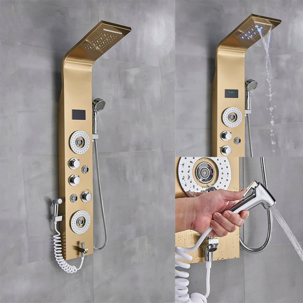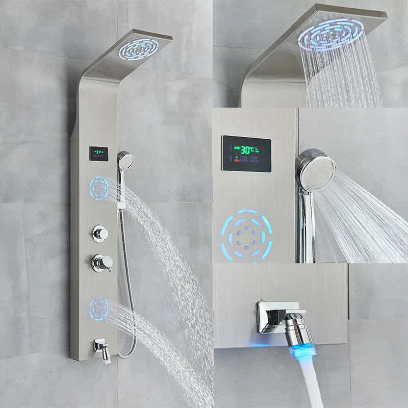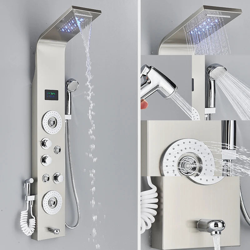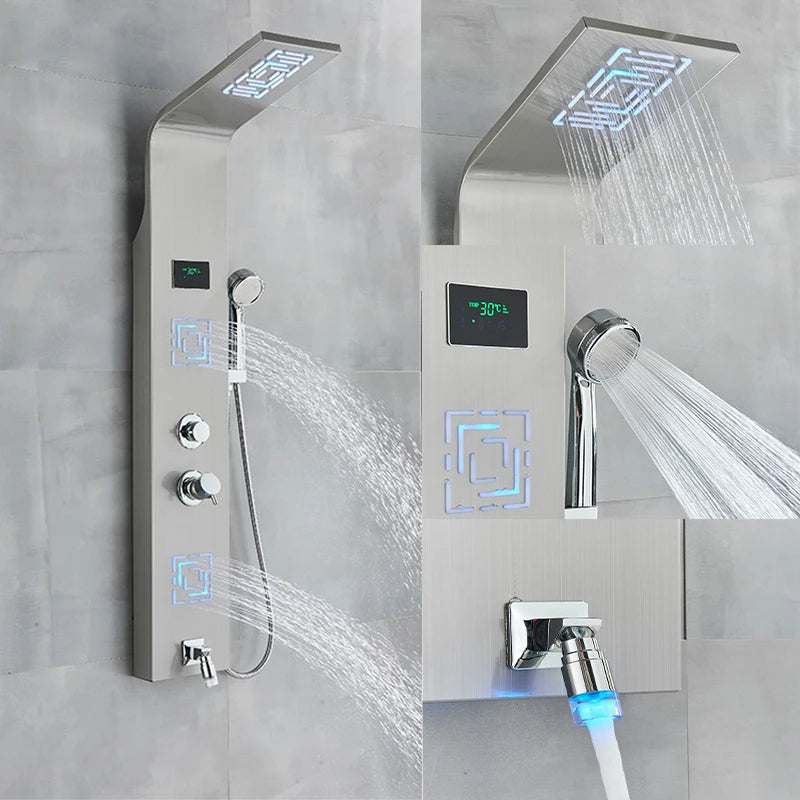 LED Shower Panel Column Bathtub Mixer Tap With Hand Shower Temperature Screen