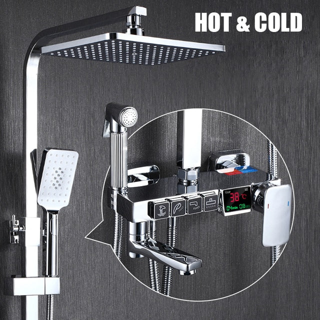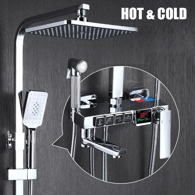 3-Functions Digital Shower Set Shower Head Digital Display Mixer Taps