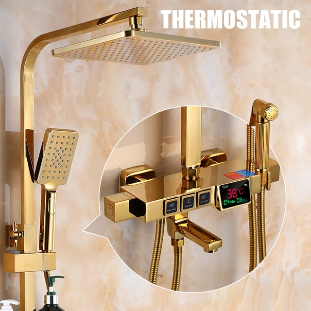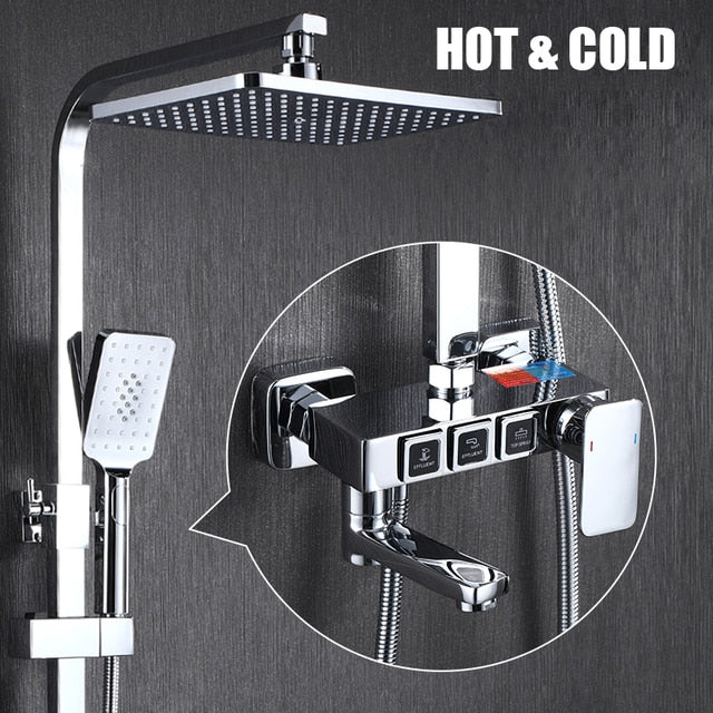 Piano Digital Shower Set Brass Bathroom Faucet Rainfall Shower System