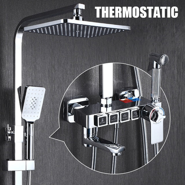 Bathroom Shower Thermostatic Mixer Rain Shower Set 3 Water Modes