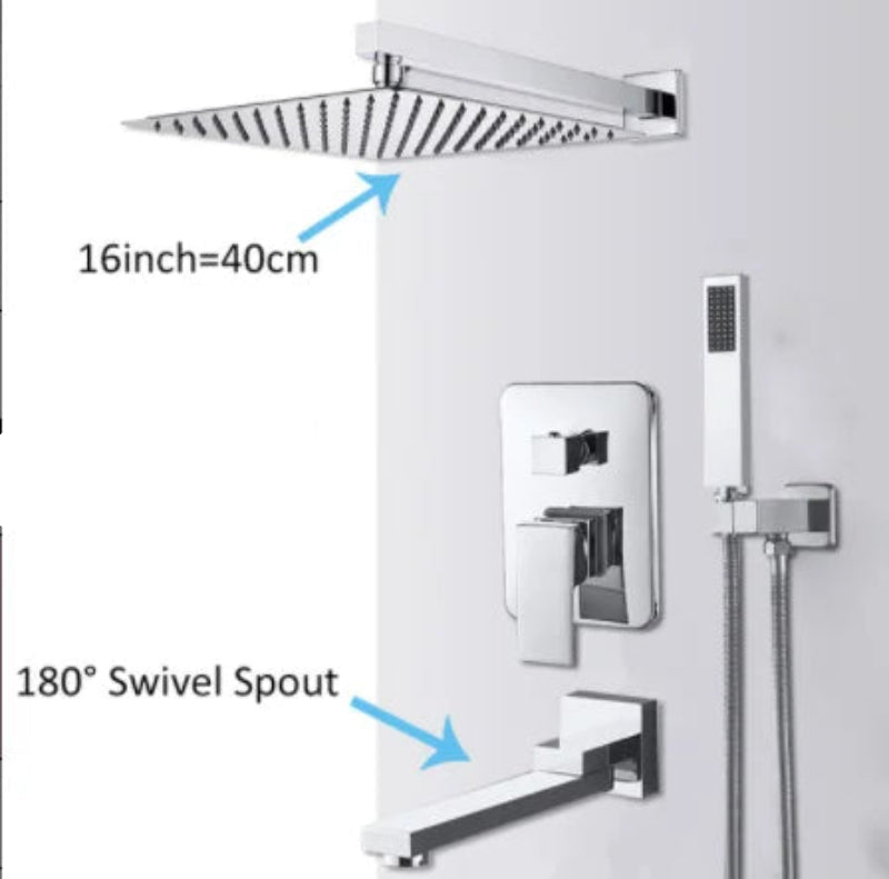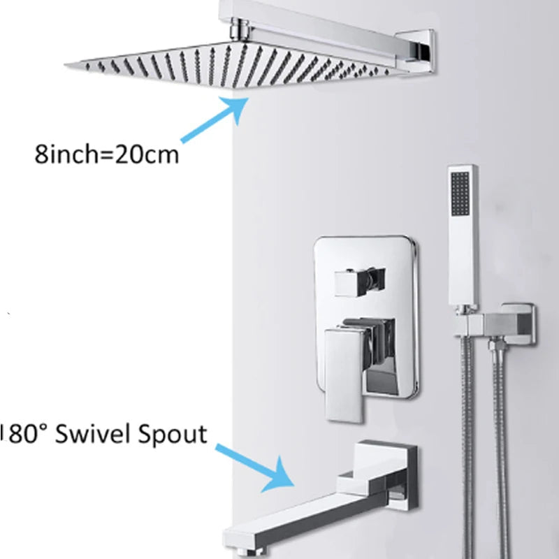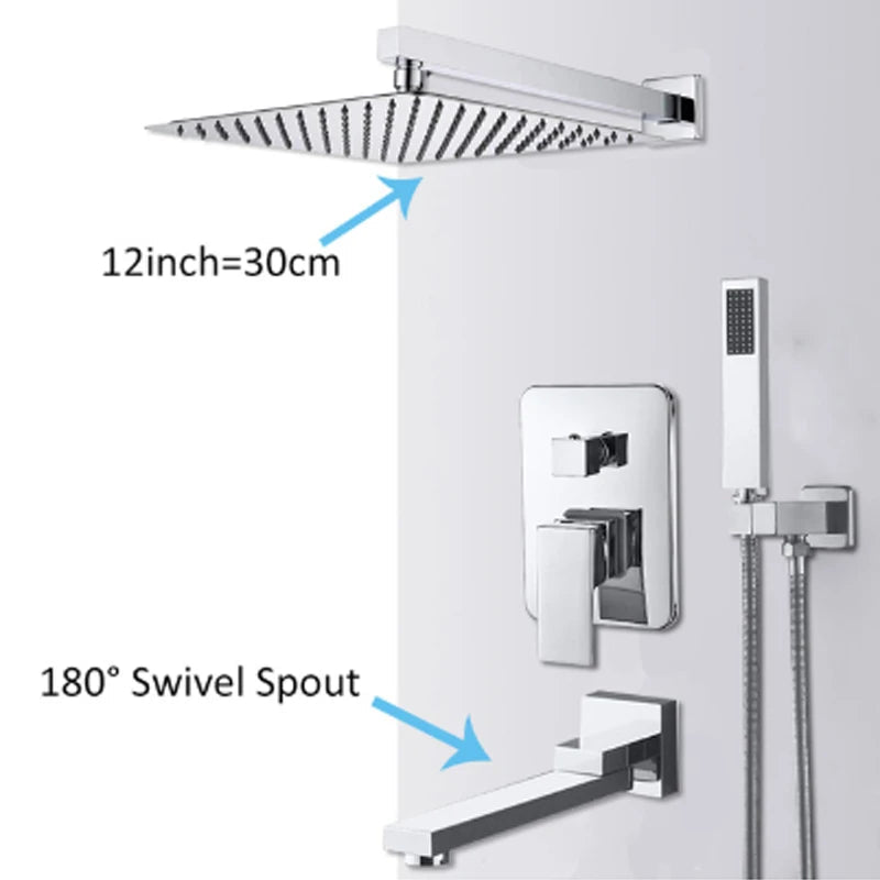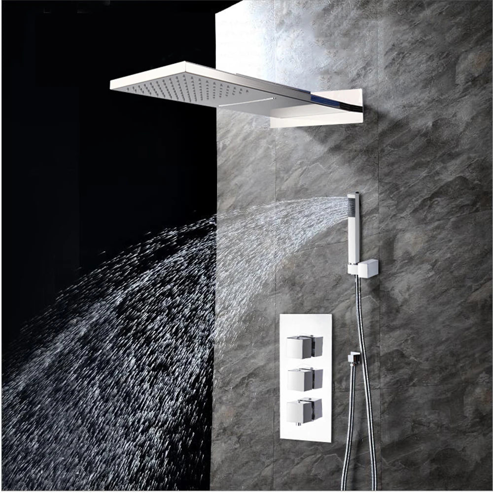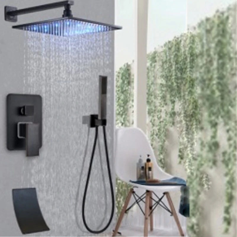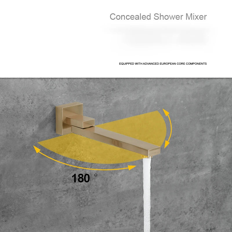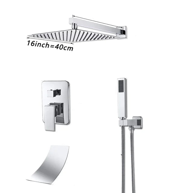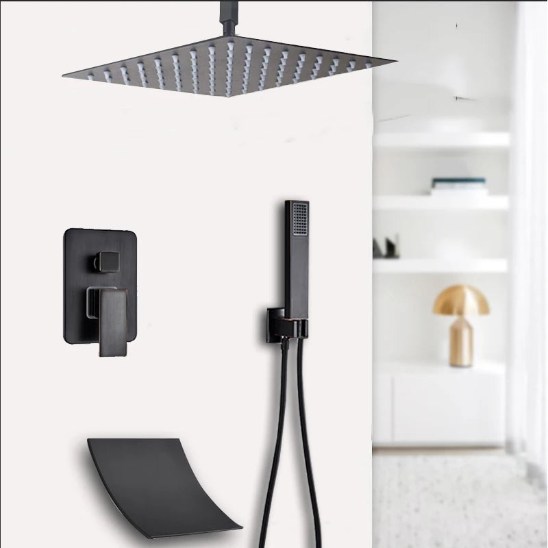 Brass Concealed Rain Waterfall Shower System With Swivel Tub Spout
