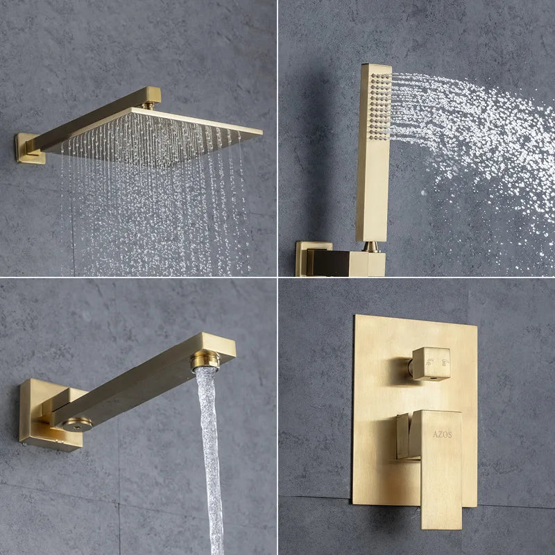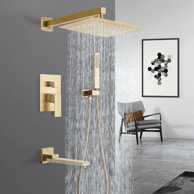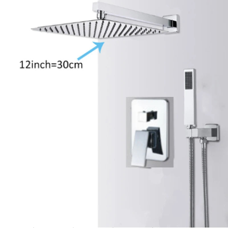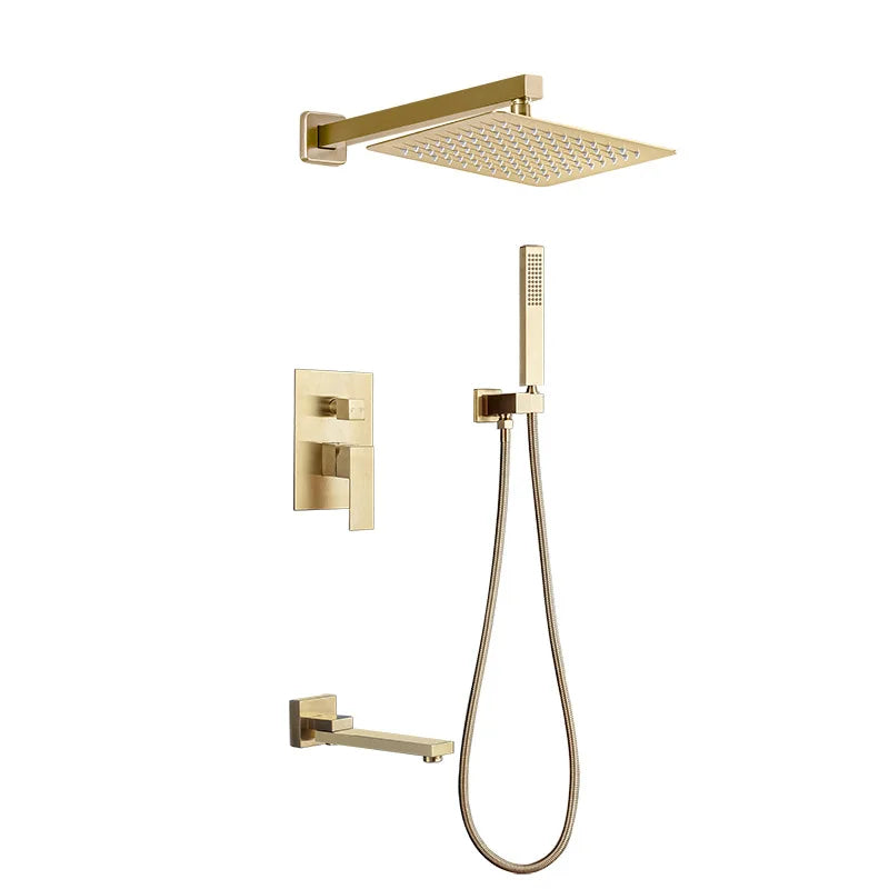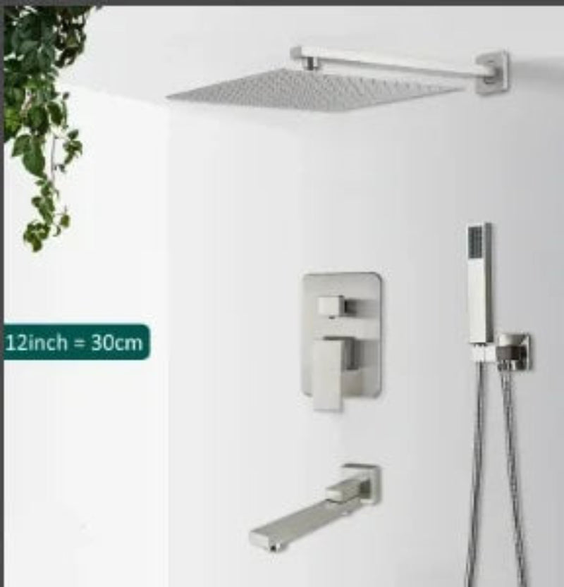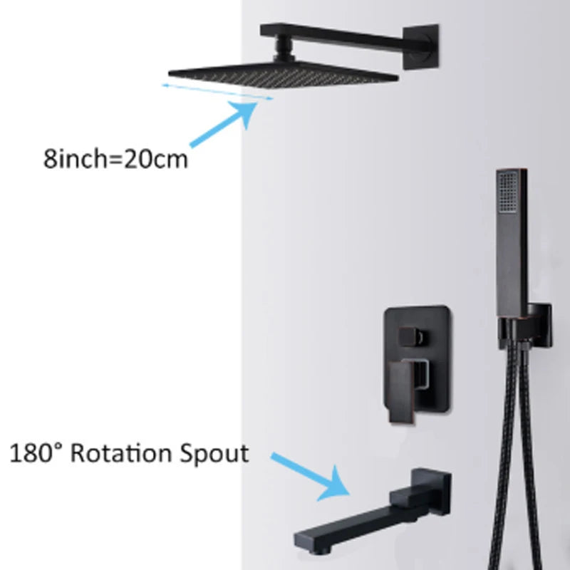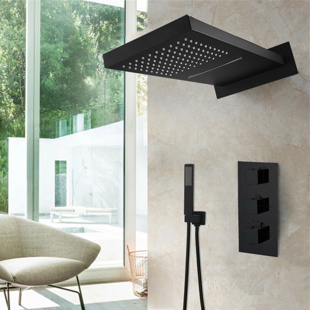Brass Concealed Rain Waterfall Shower System With Swivel Tub Spout