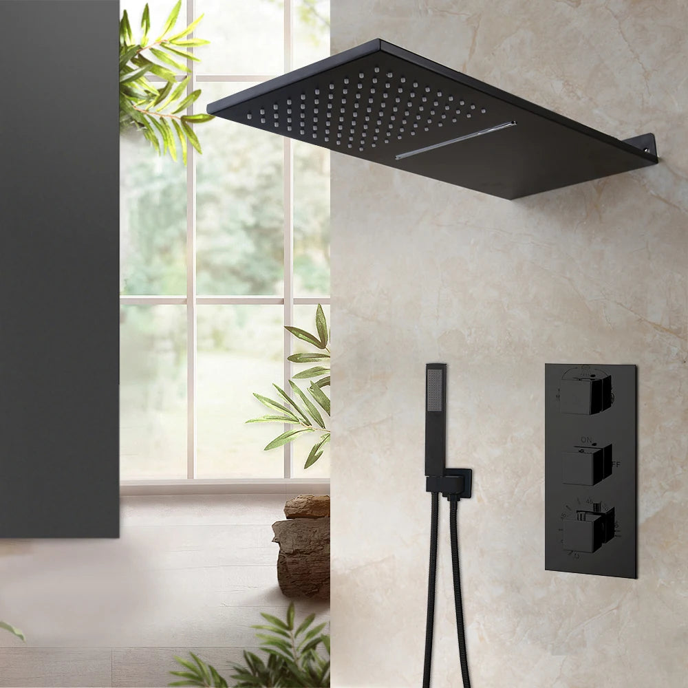 LED Light Ceiling Mount Rainfall Concealed with Thermostat Shower System