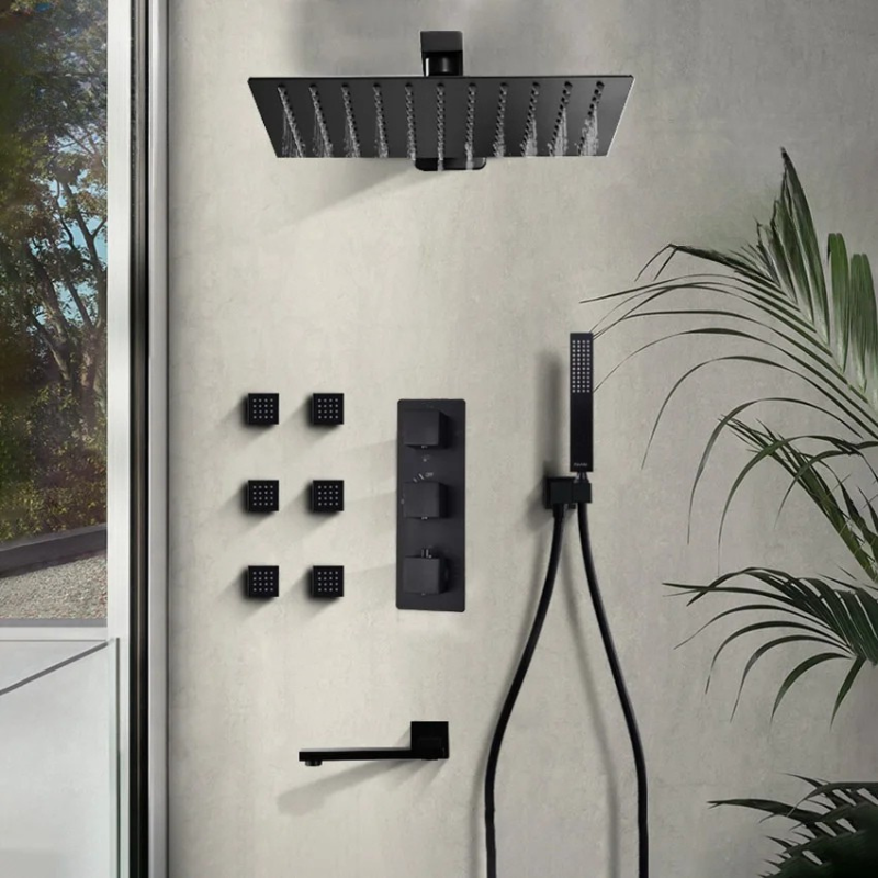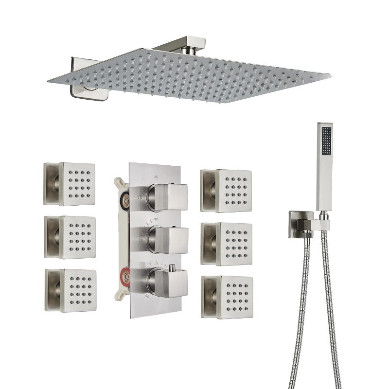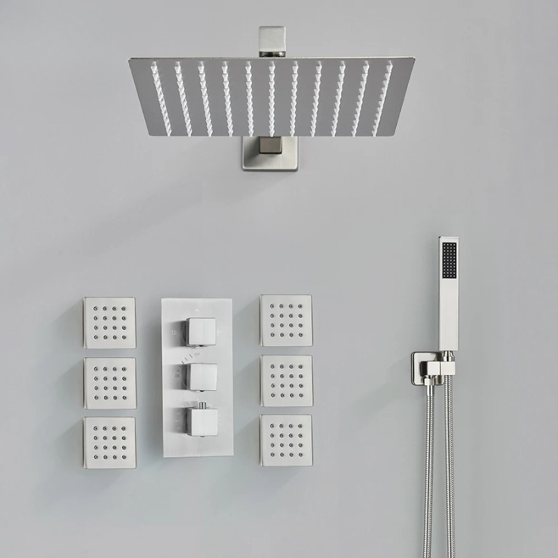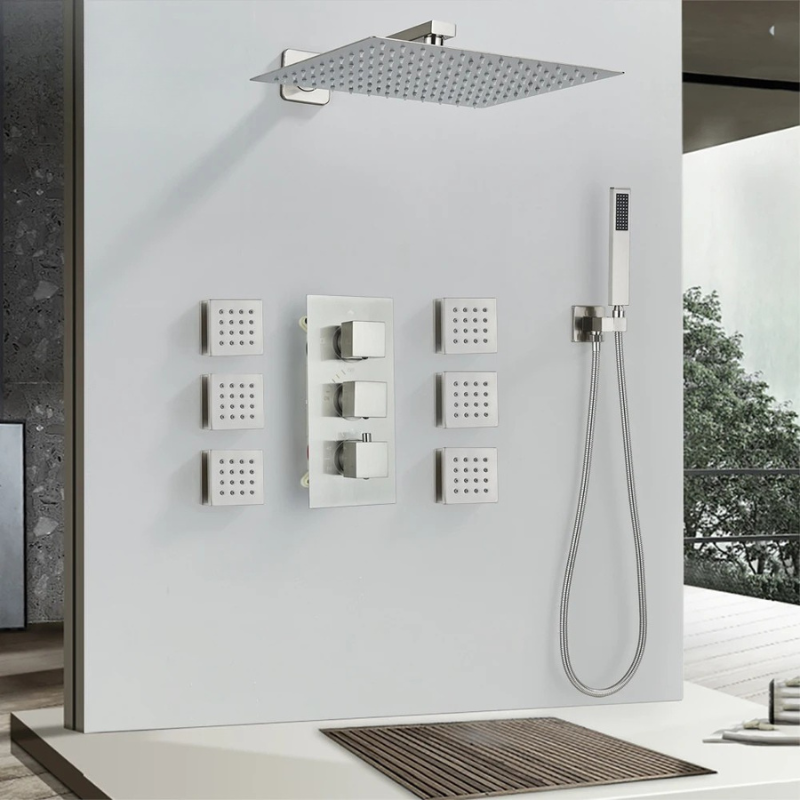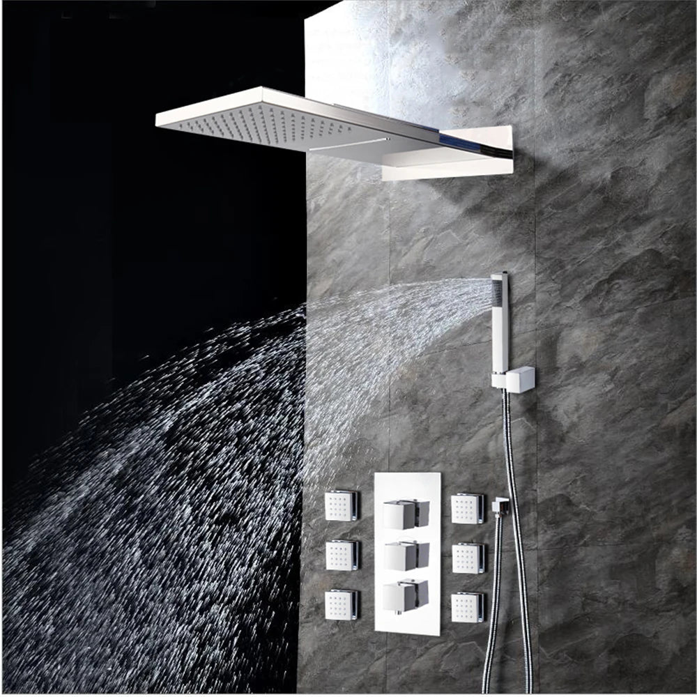 Concealed Shower Mixer Tap Brass Massage Jet Thermostatic Shower Faucet