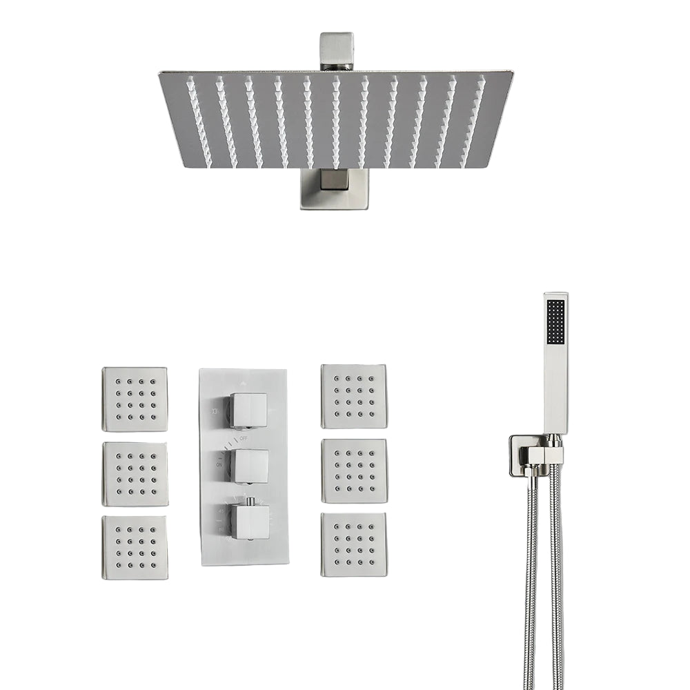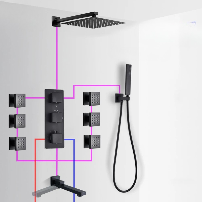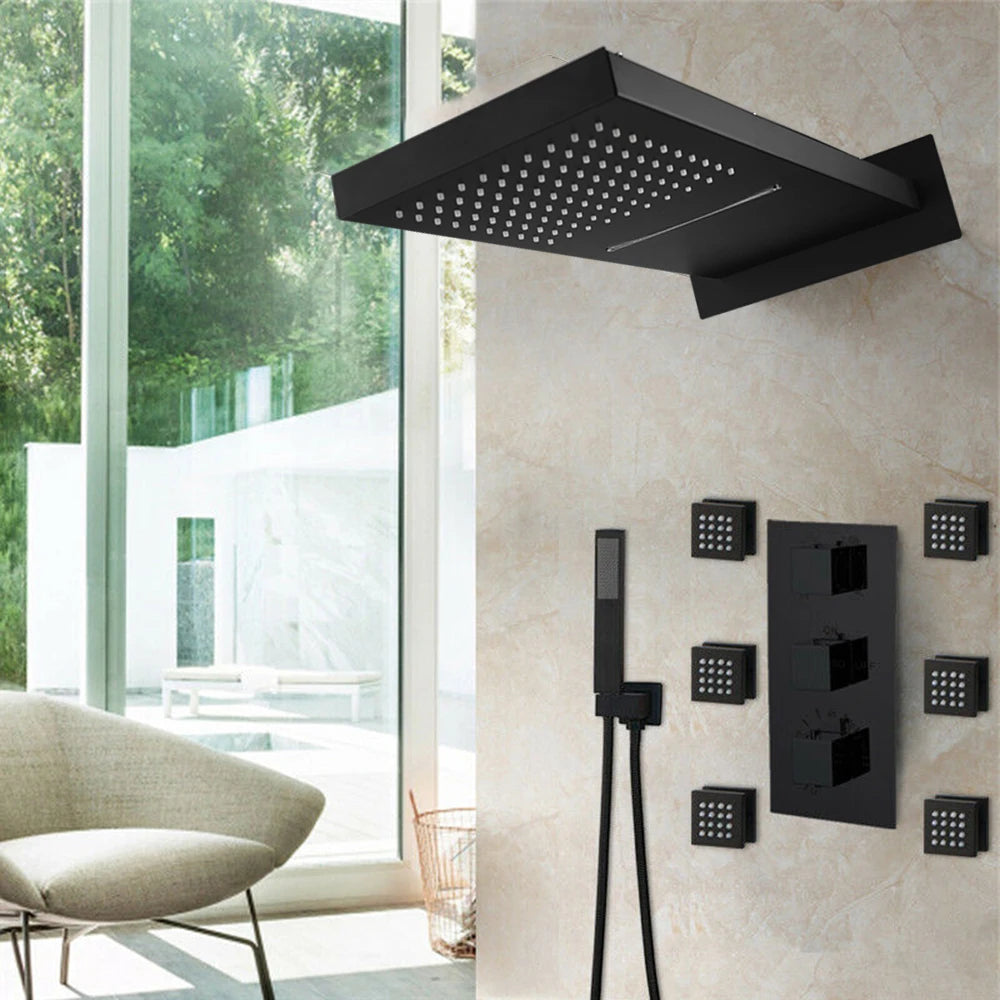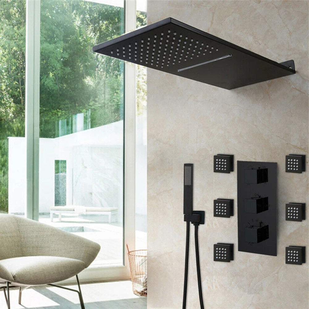Concealed Shower Mixer Tap Brass Massage Jet Thermostatic Shower Faucet