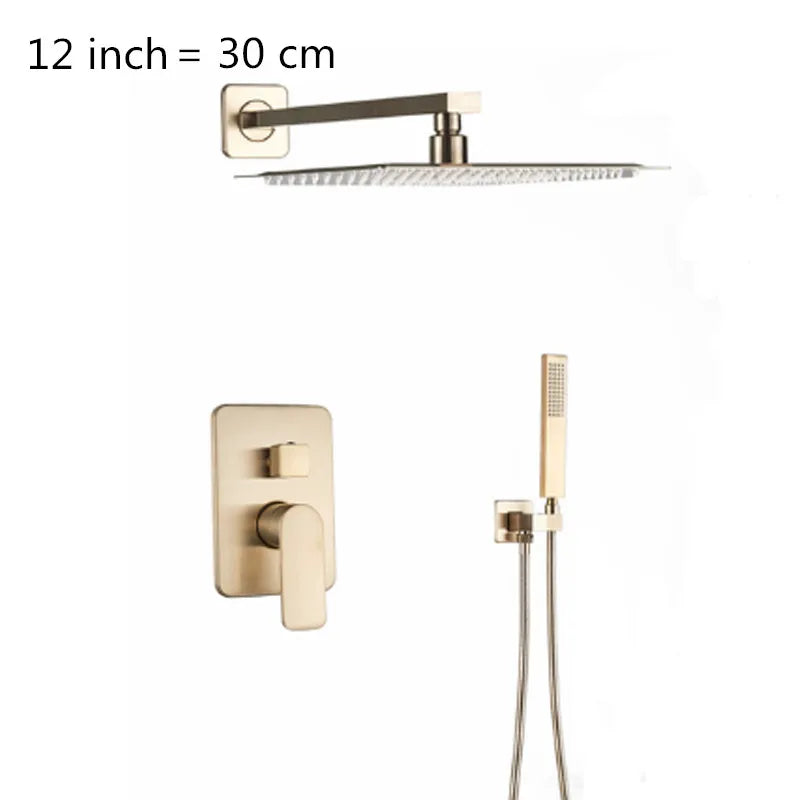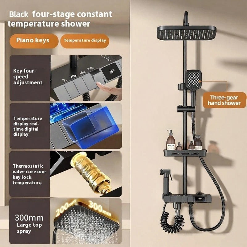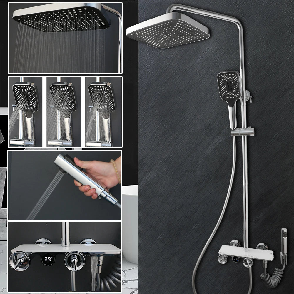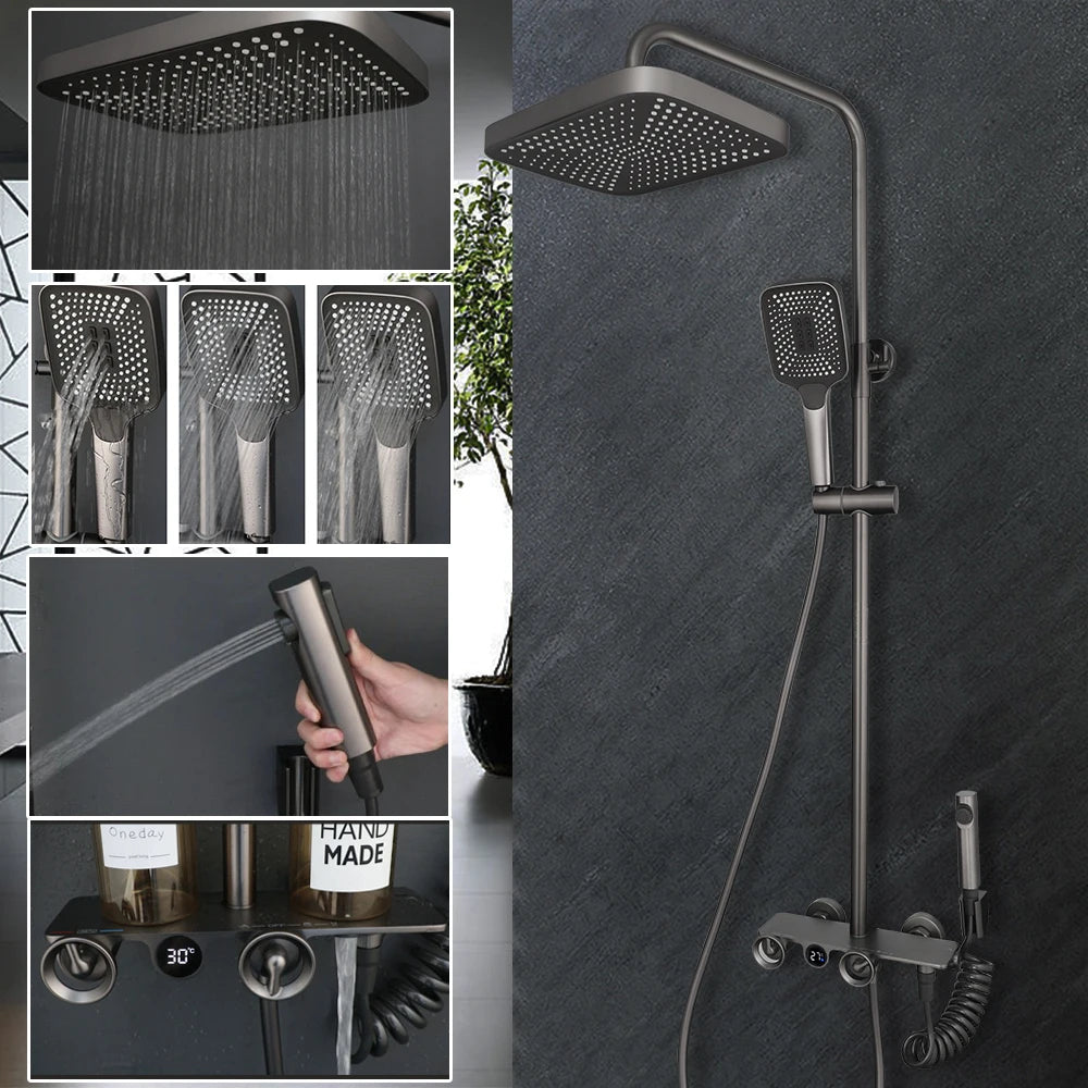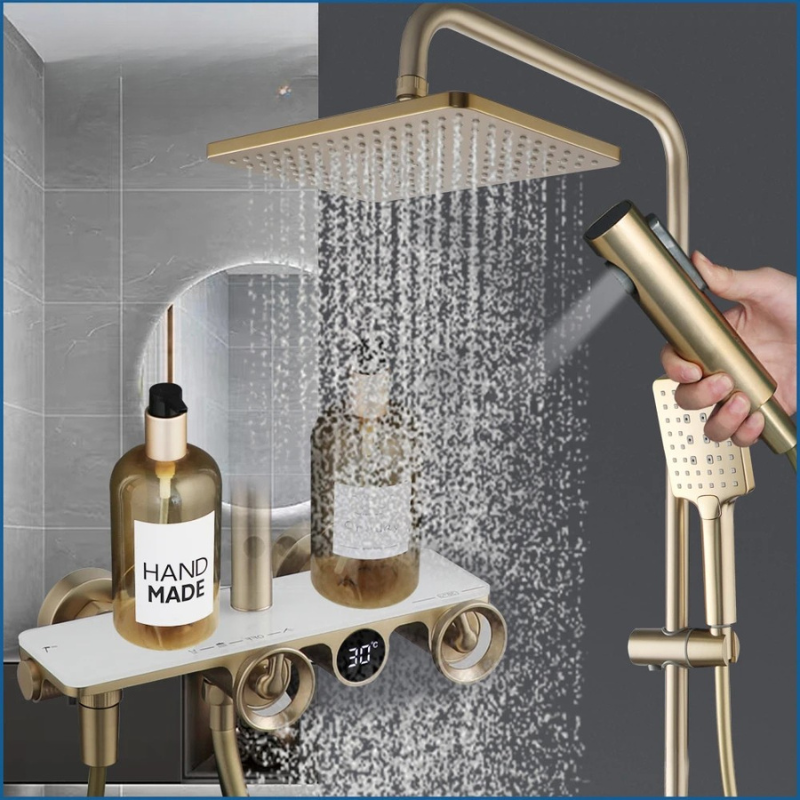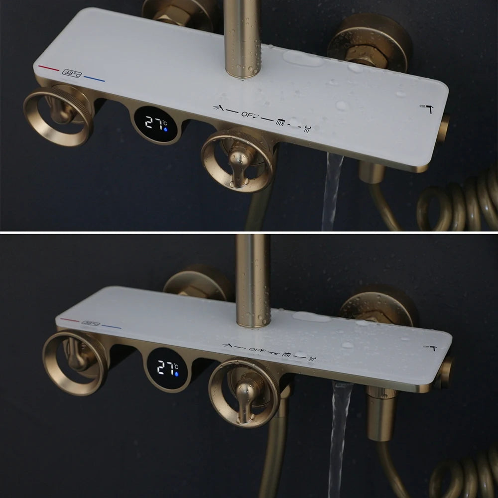 Luxury Brass Embedded Shower System With Temperature Digital Display
