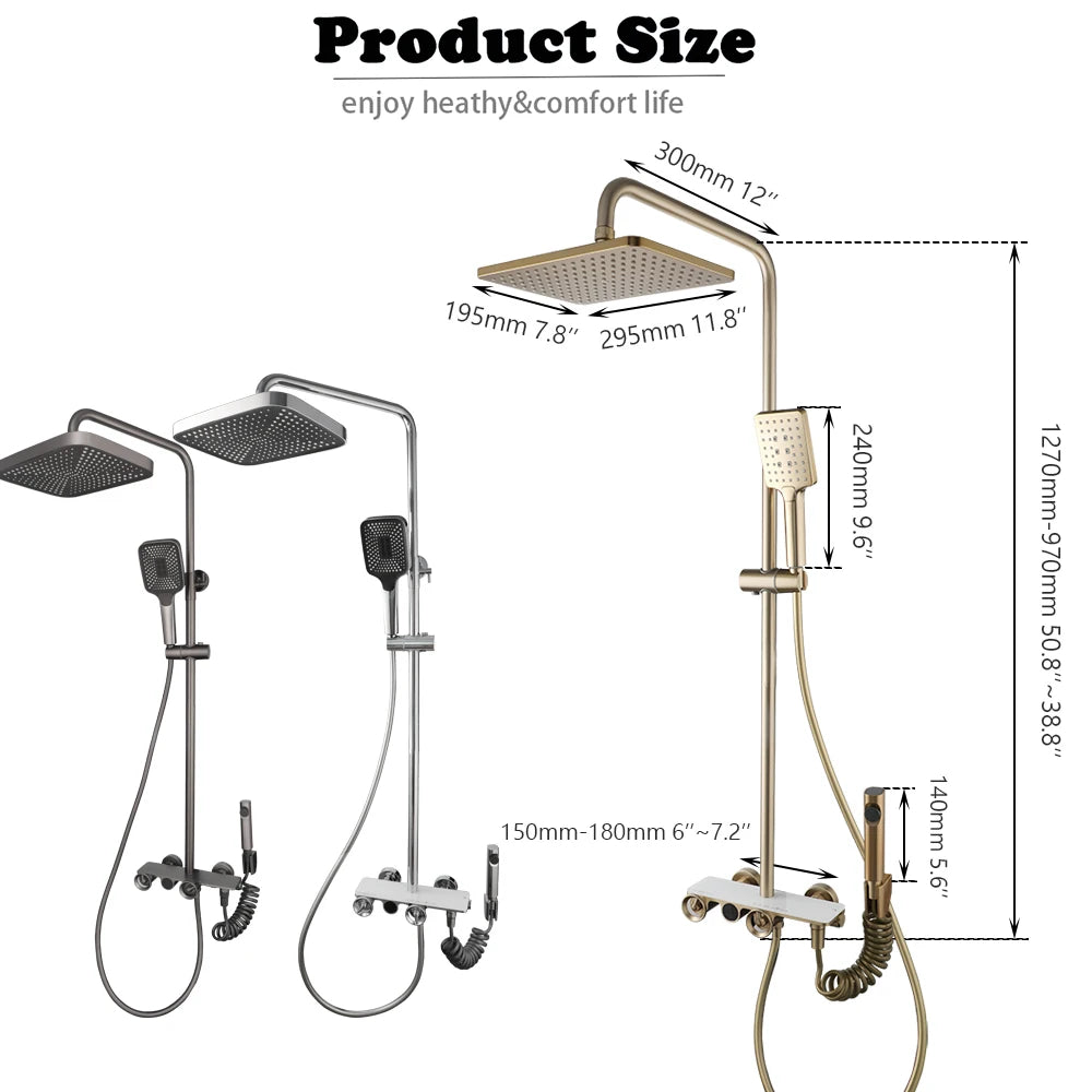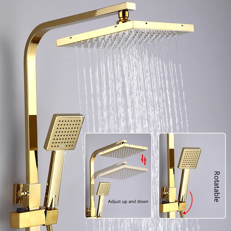 Height Adjustable Brass Rain Shower System Set with Handheld Spray