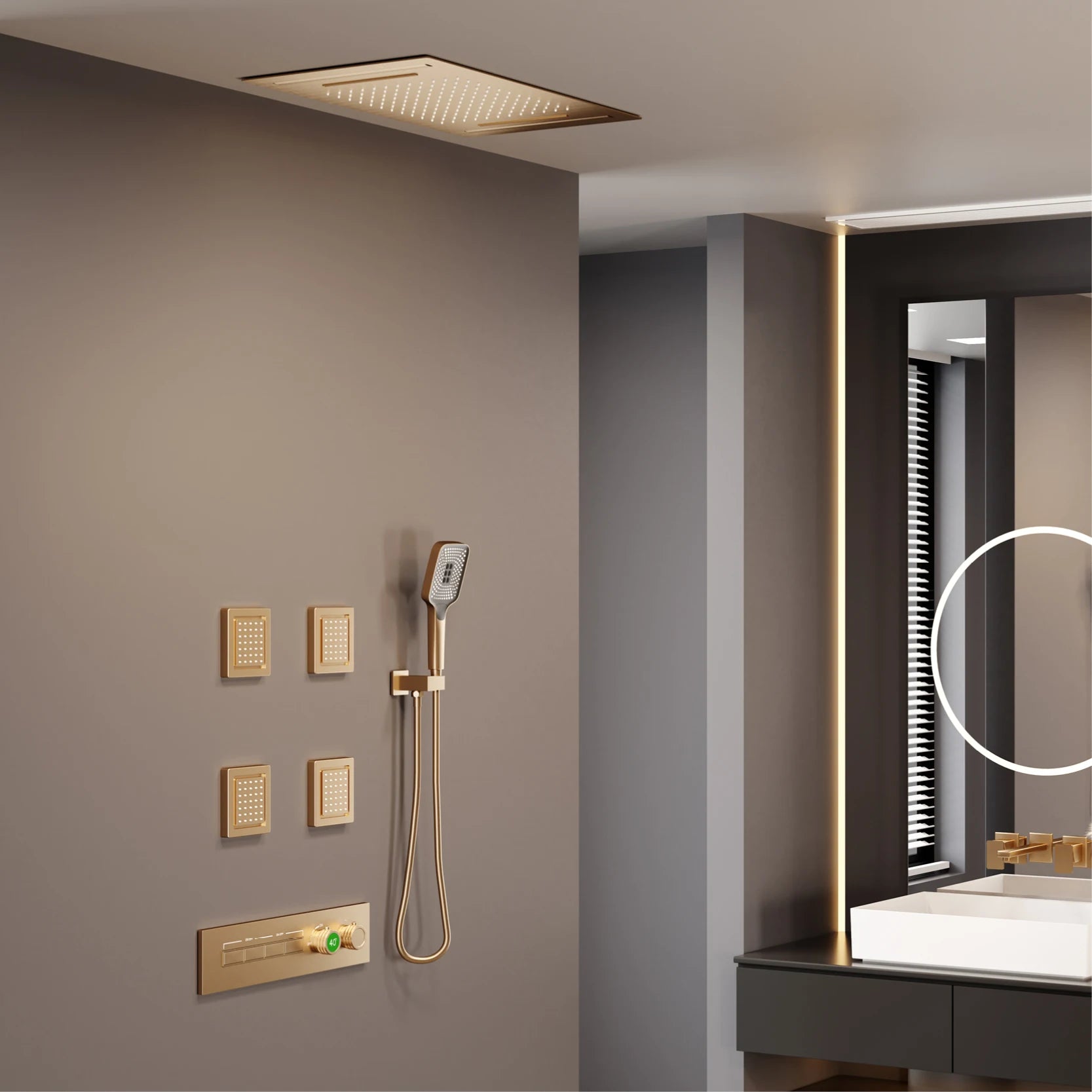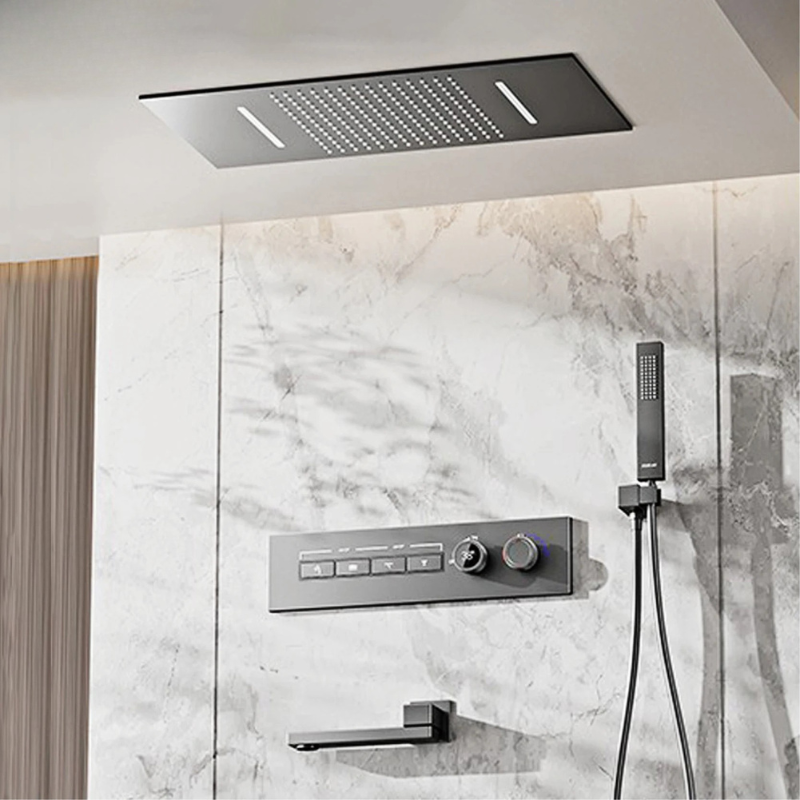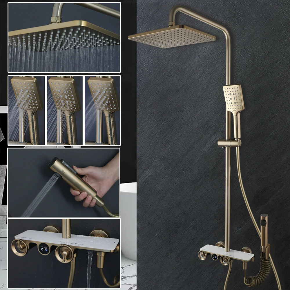 Luxury Brass Shower System Ceiling Design Hidden LED Digital Display