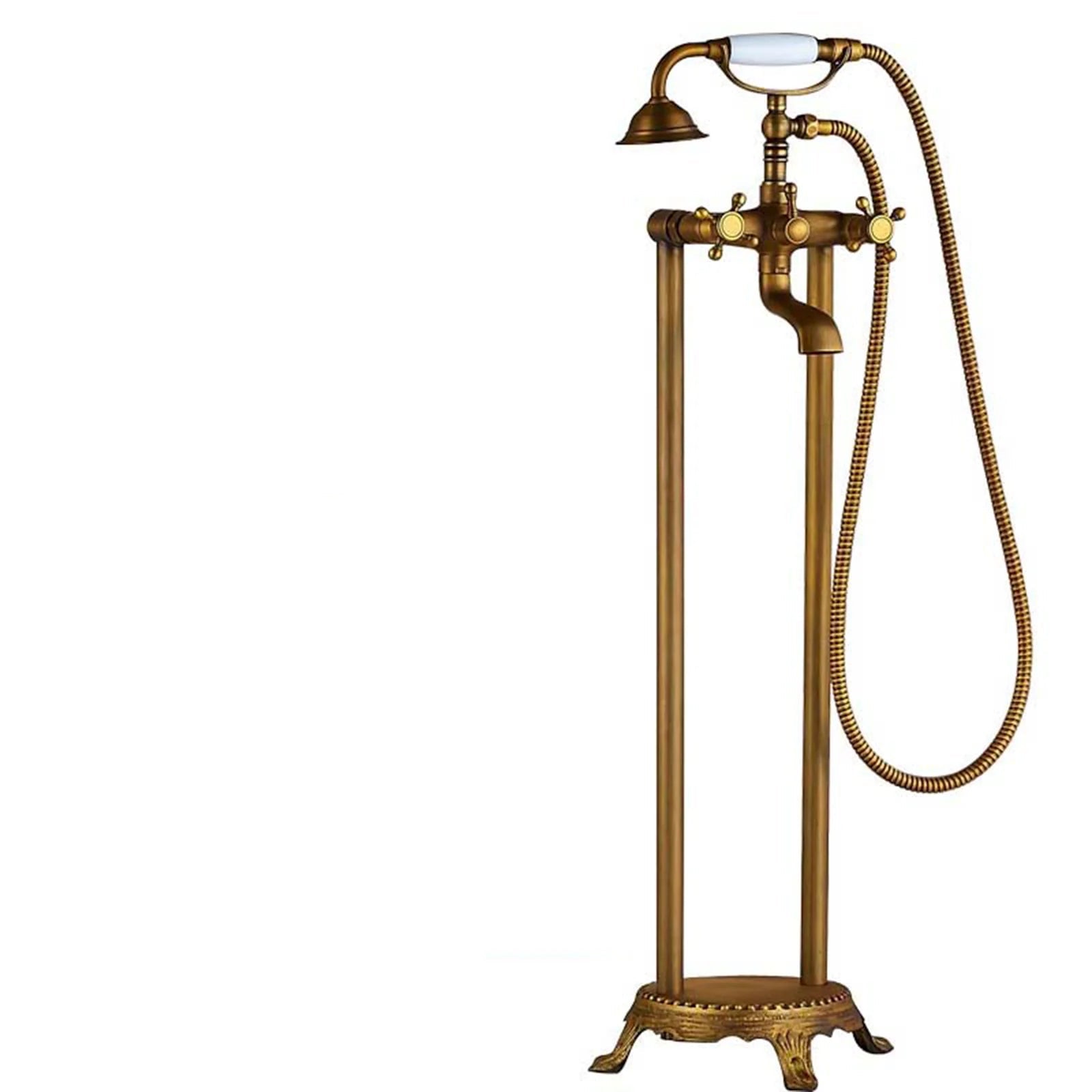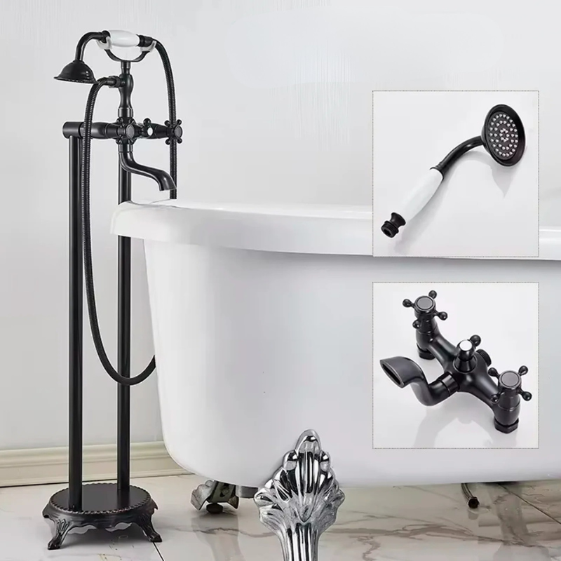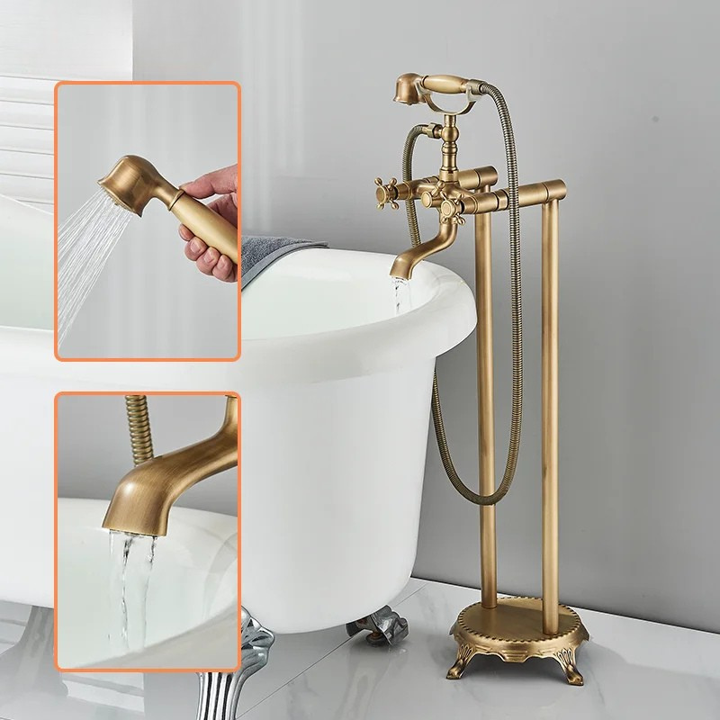 Antique Double Tube Handle Bathtub Faucet Set With Rainfall Handshower