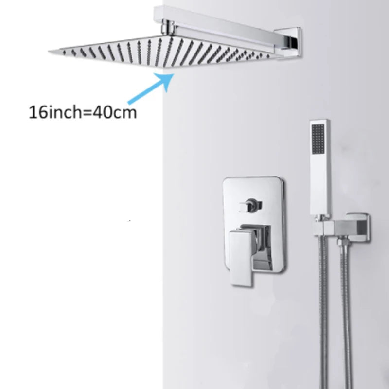 3-Ways Valve Brass Rain Waterfall Bathtub Shower Faucet Water Mixer