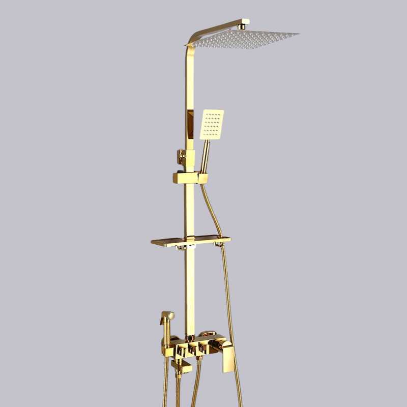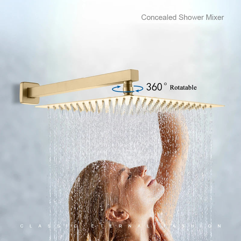 Bright Golden Brass Rain Shower Faucet Bath Thermostatic Shower Faucet