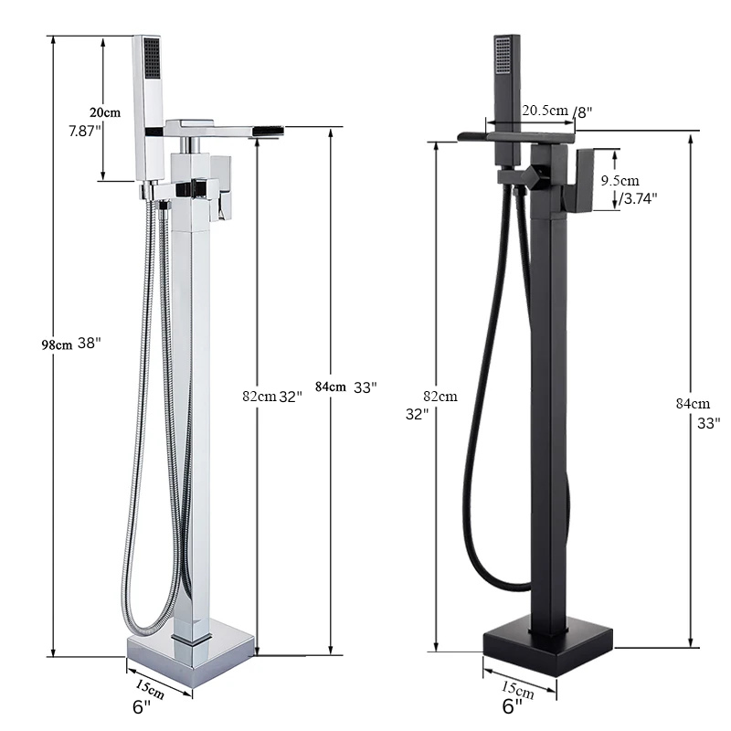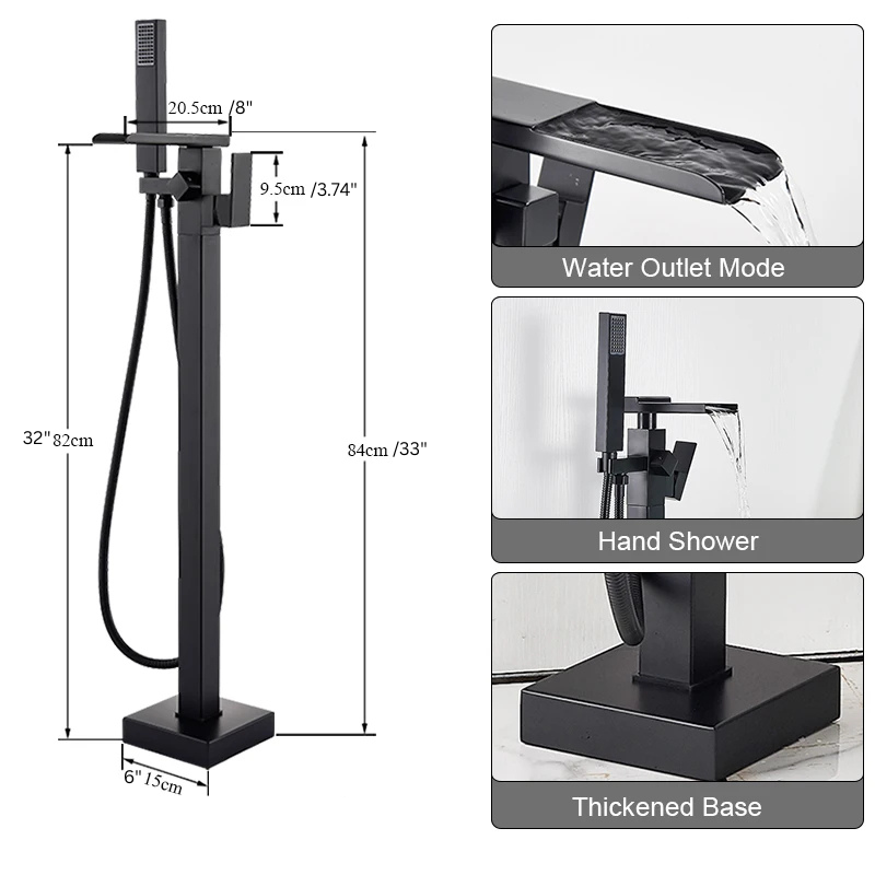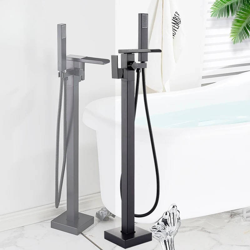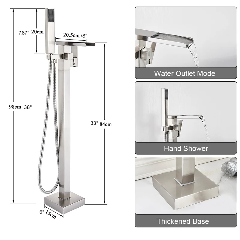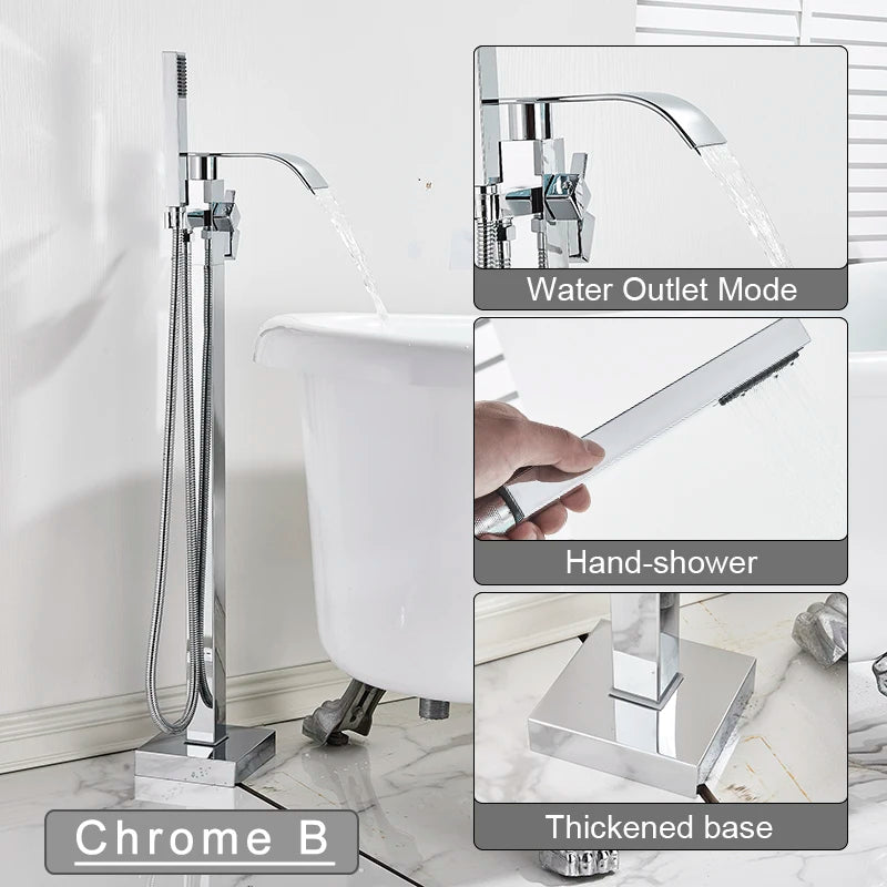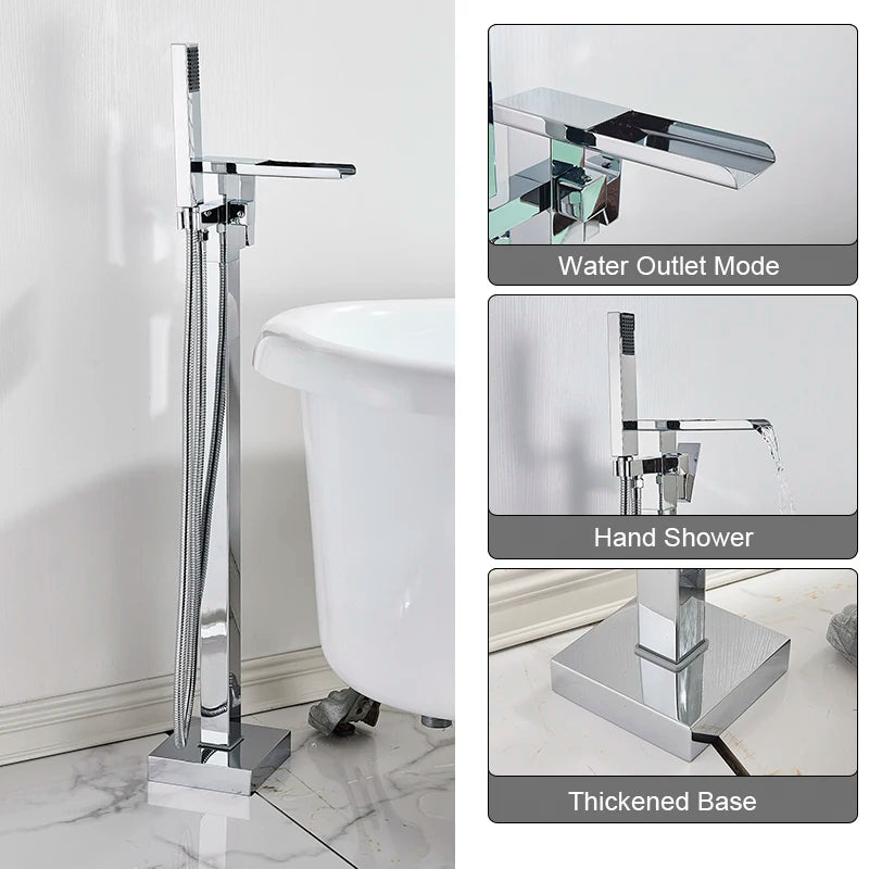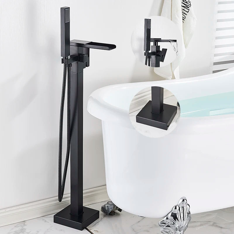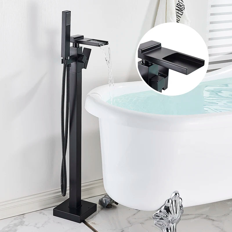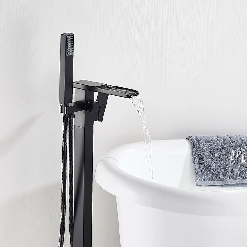 Freestanding Waterfall Brass Bathtub Faucet 2 Function Hand Shower Tap