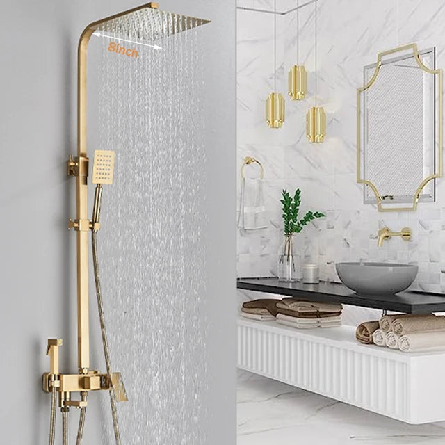 Shower Set Wall Mounted Brass 4 Way Bathroom Shower Faucet with Bidet