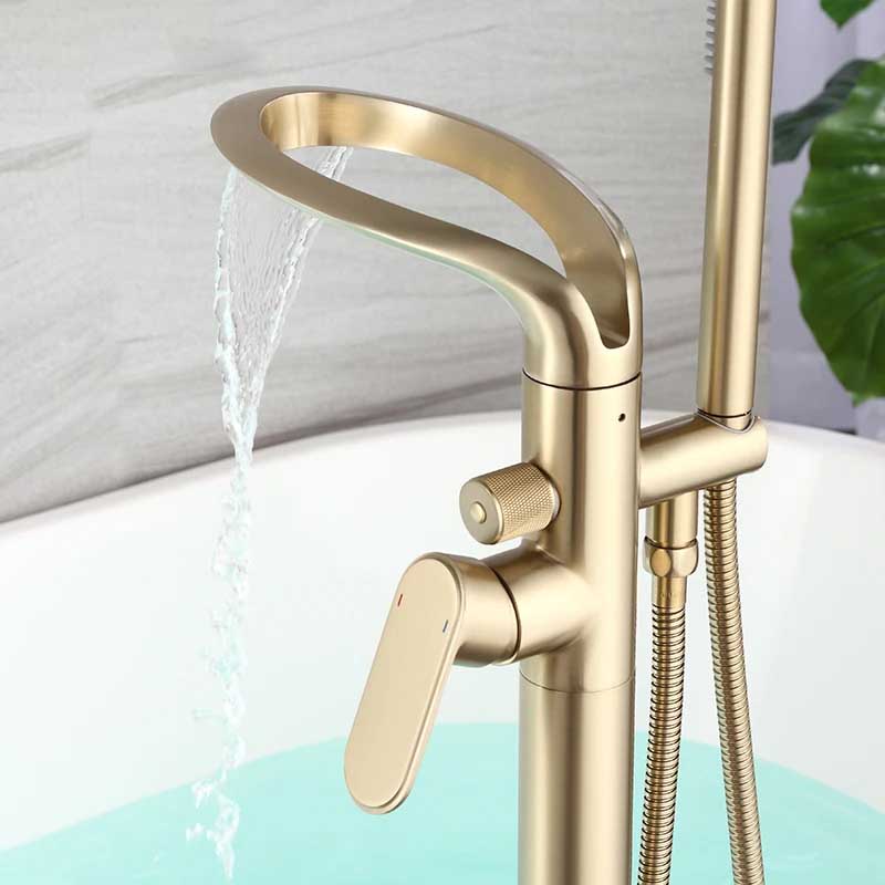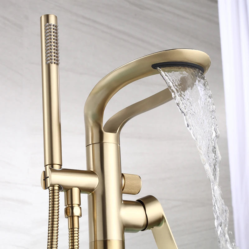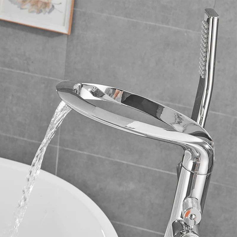 Bathtub Waterfall Floor Mount with Bathroom Faucet with Hand Shower