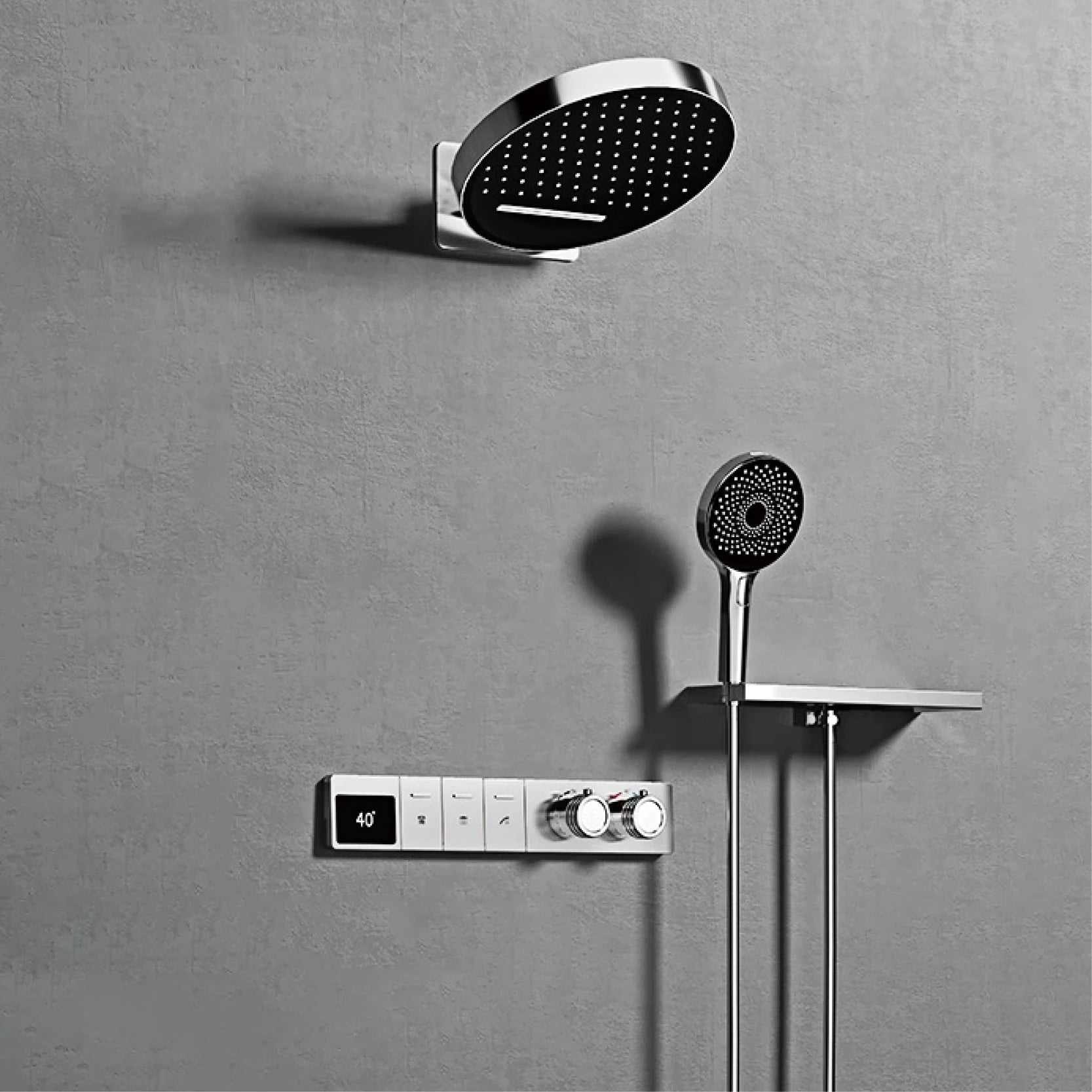Ceiling Shower Head and Shelf Wall Mounted Mixer Tap Set