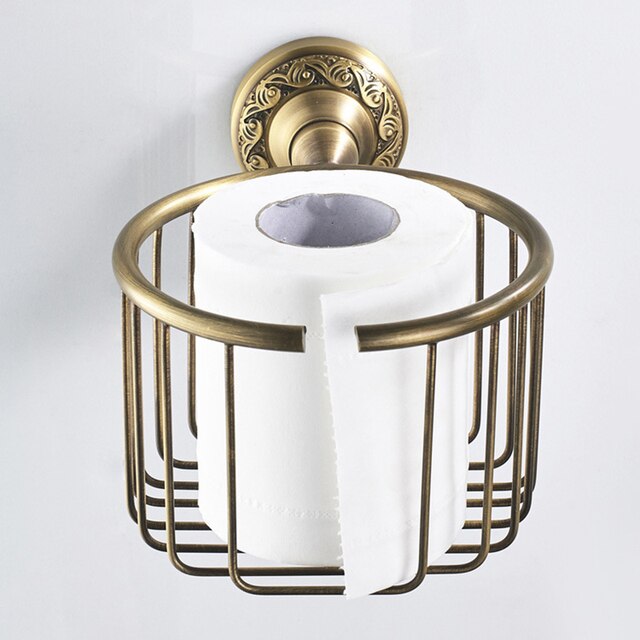 Antique Brass Bathroom Hardware Carved Paper Holder Bath Accessory