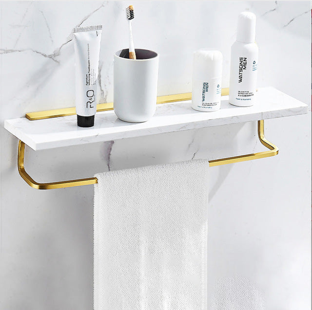 Bathroom Accessories Brushed Gold Bathroom Shelf Marble and Brass