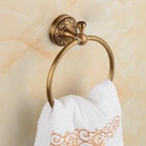 Antique Brass Towel Ring Carved Toilet Holder Creative Towel Bar