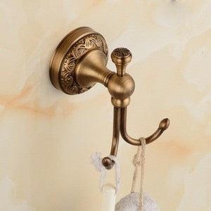 Foldable Antique Brass Bath Towel Rack Double Towel Shelf With Hooks