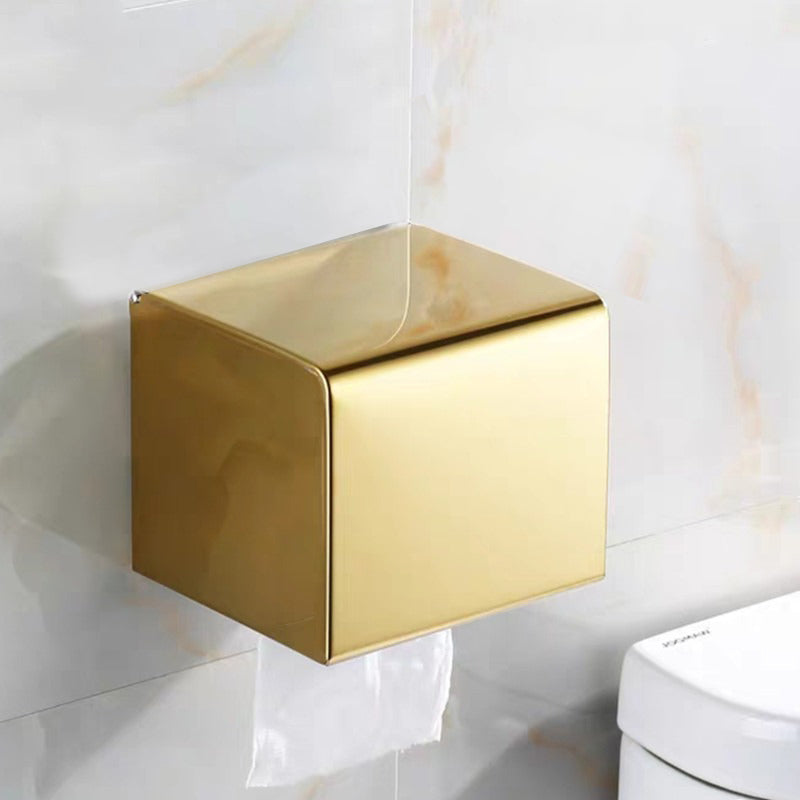 Gold Stainless Steel Bathroom Accessory Roll Paper Toilet Tissue Box