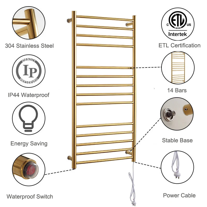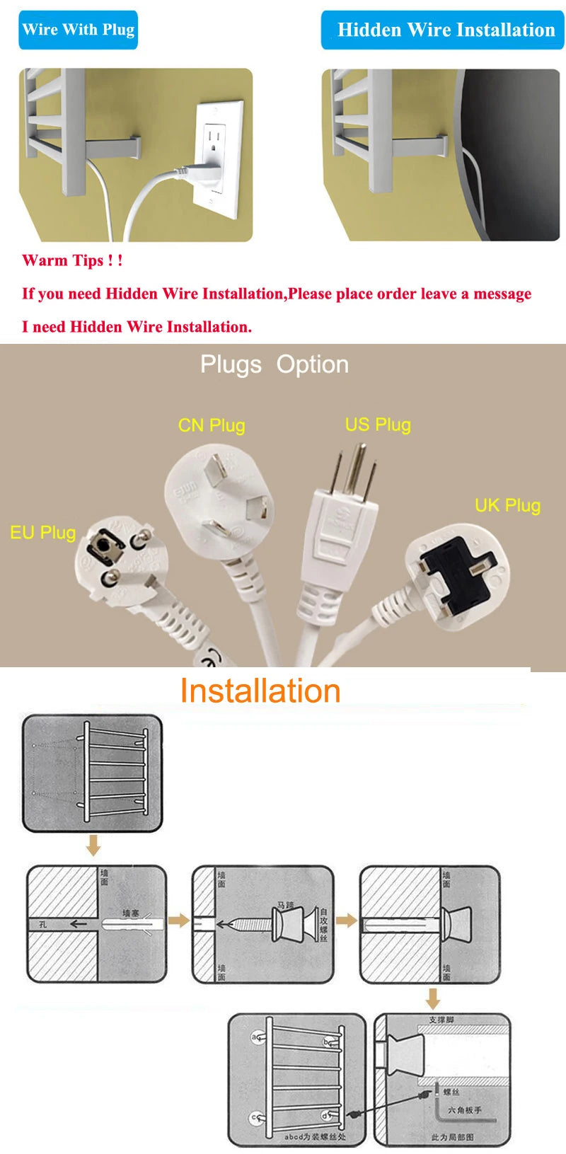 Rust-resistant, durable, and easy to maintain.Heated Towel Warmer Hidden Wire Stainless Steel Electric Towel Rack