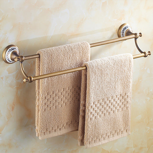 Antique Bathroom Accessory Carved Brass Hardware Wall Mount Towel Bar