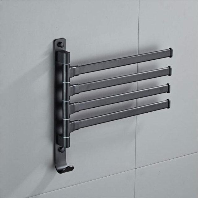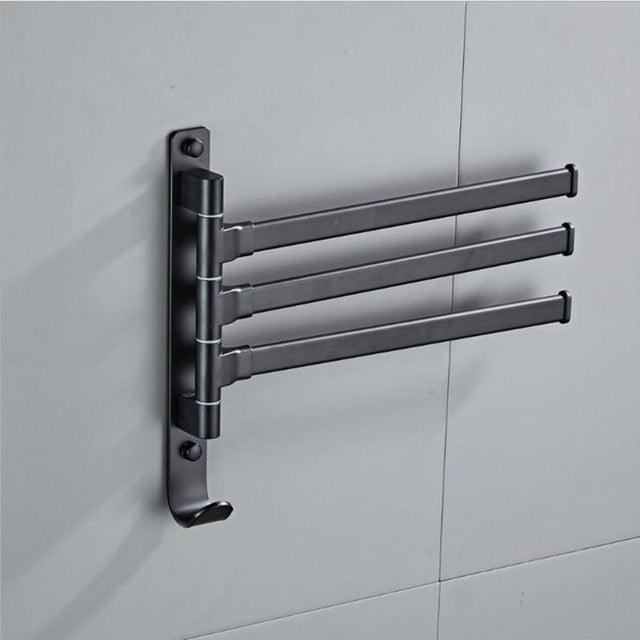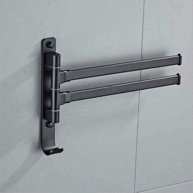 Matte Black Bathroom Swivel Towel Bar Space Saving Swinging Rack