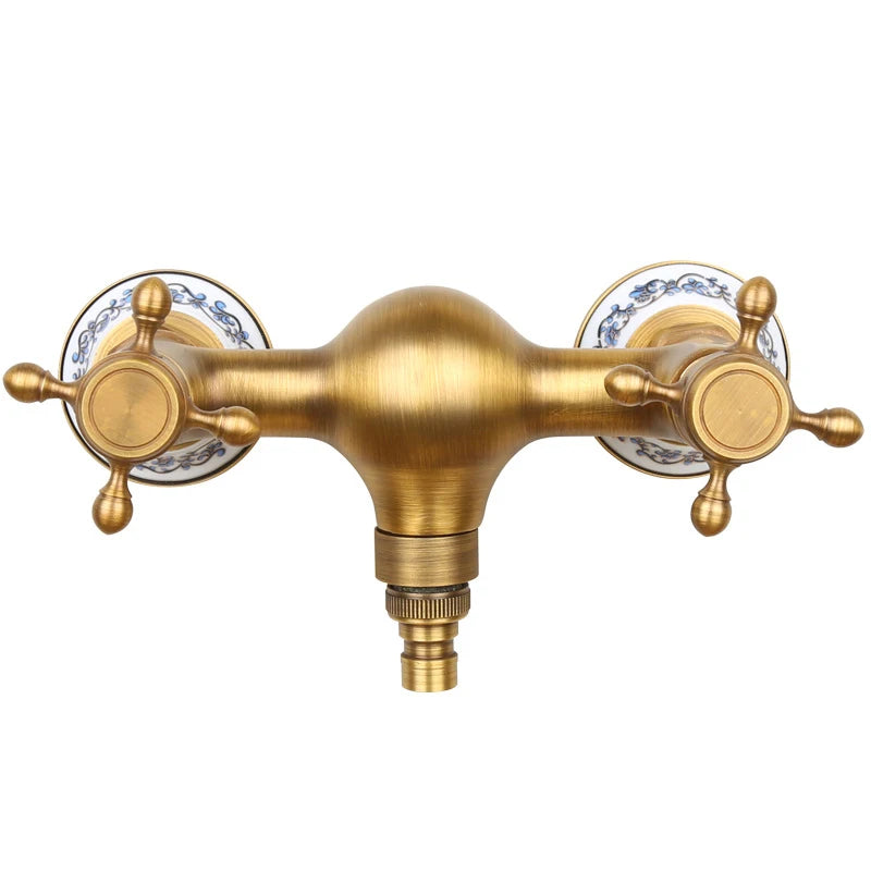 Antique Brass Washing Machine Faucet 2 Holes Water Mixer Tap Bibcock