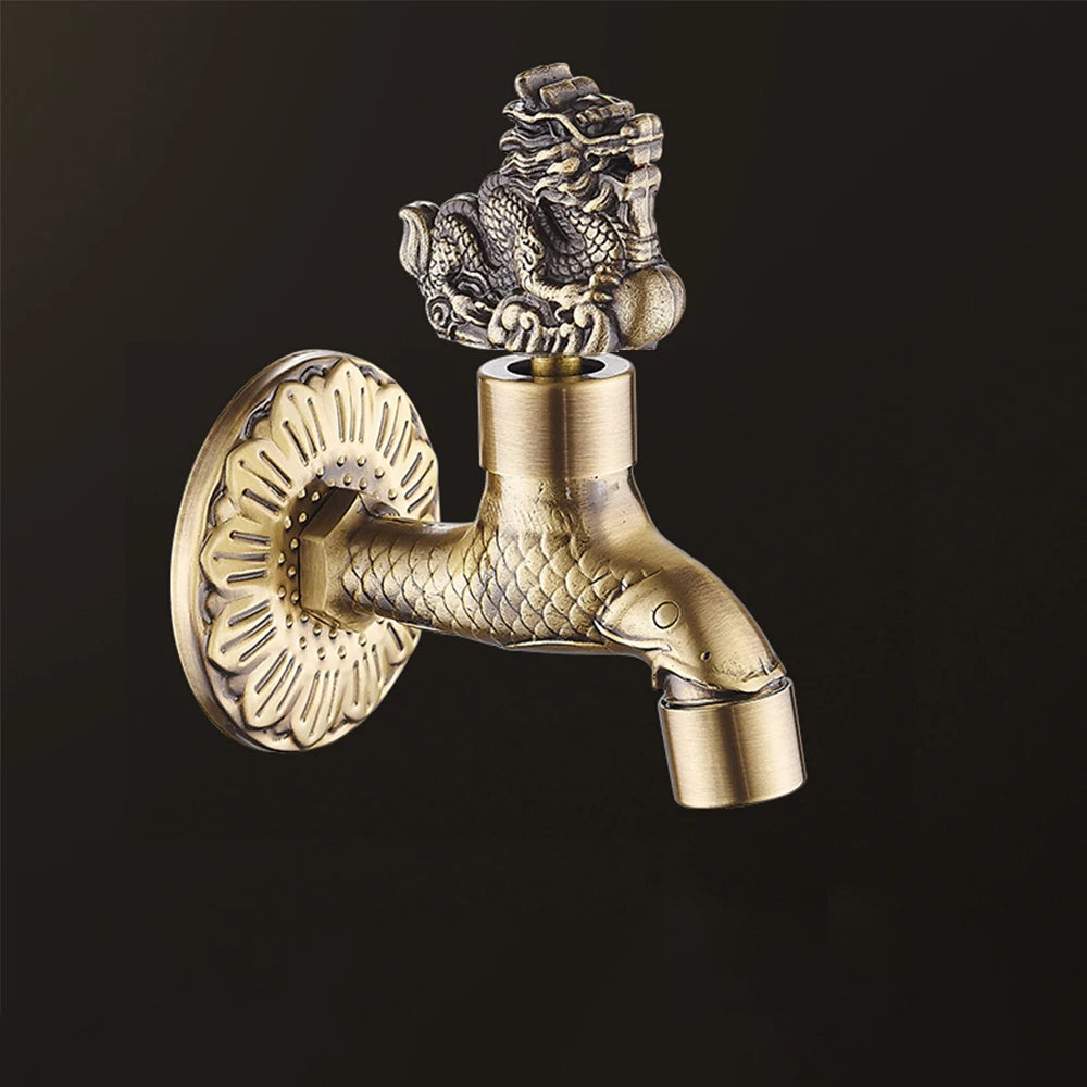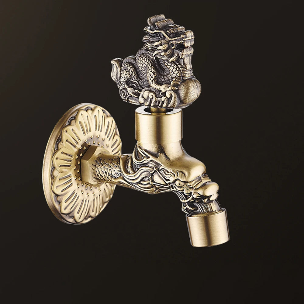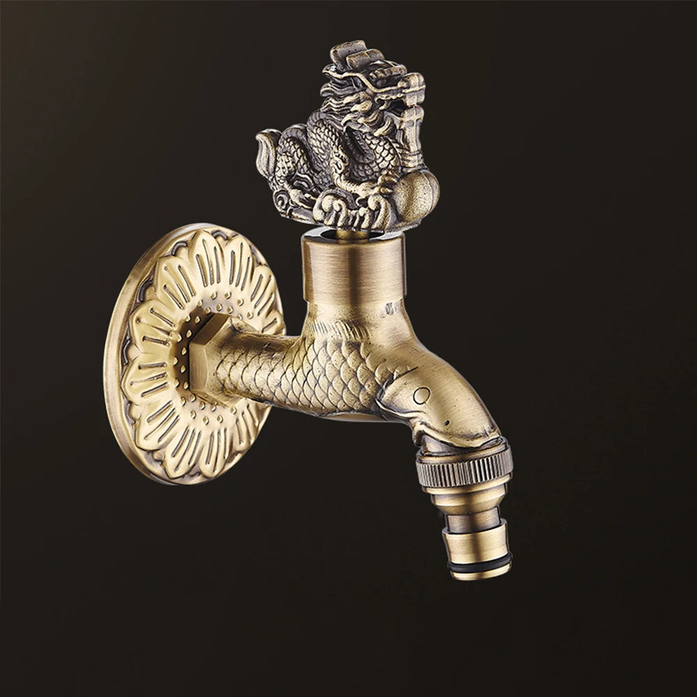 Garden Faucet Wall Mount Outdoor Dragon Water Hose Cold Tap Decorative