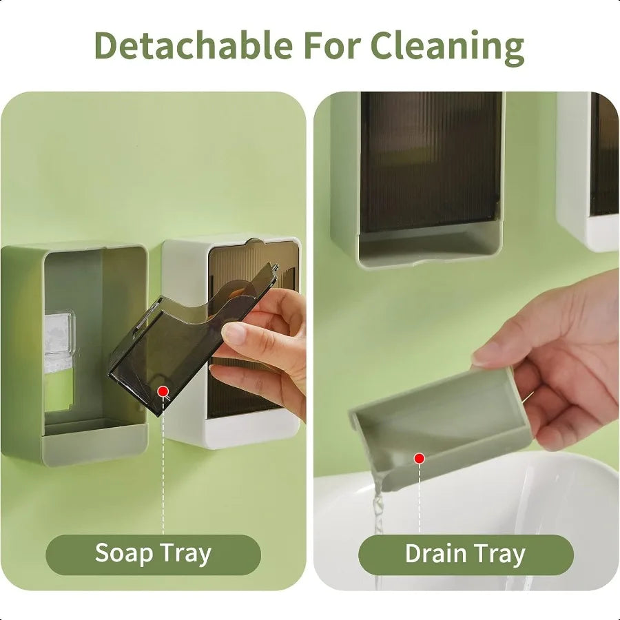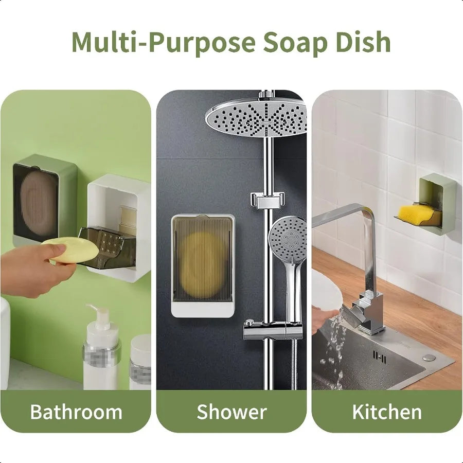 2pcs Adhesive Bar Soap Holder Dish with Self Draining Soap Box Tray