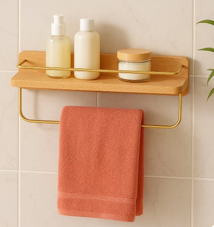 1 *Wall Hanging Storage Bathroom Shelving Wooden Brass Towel Holder Bars